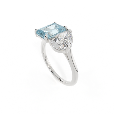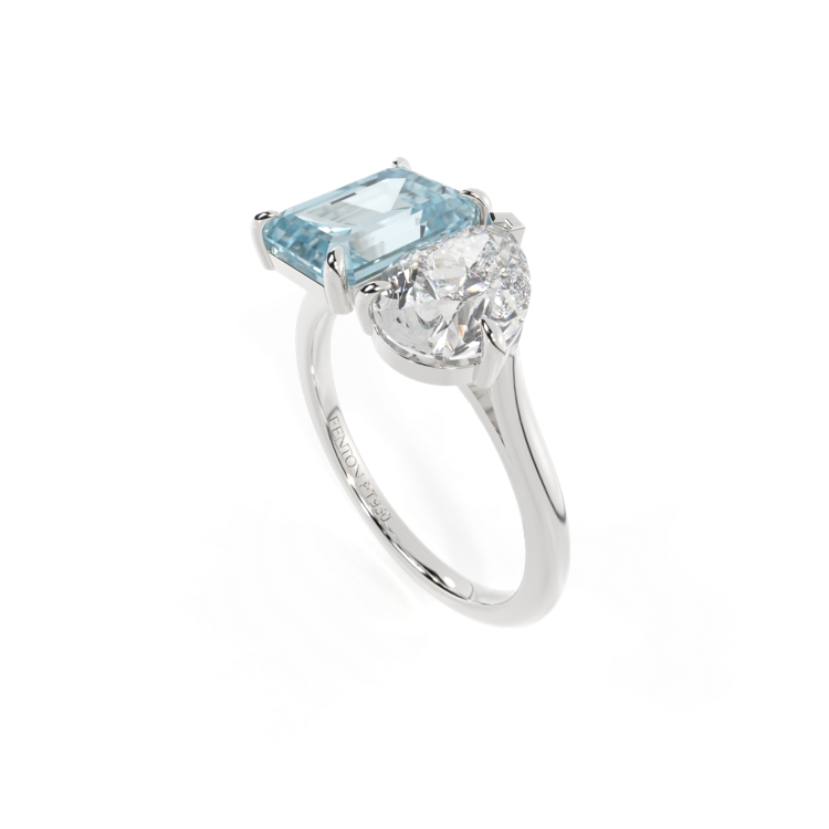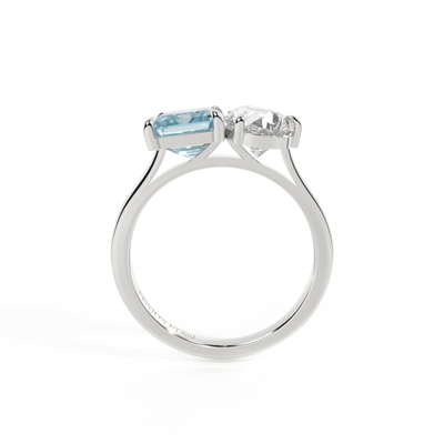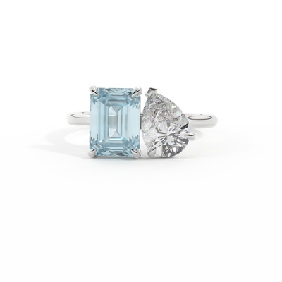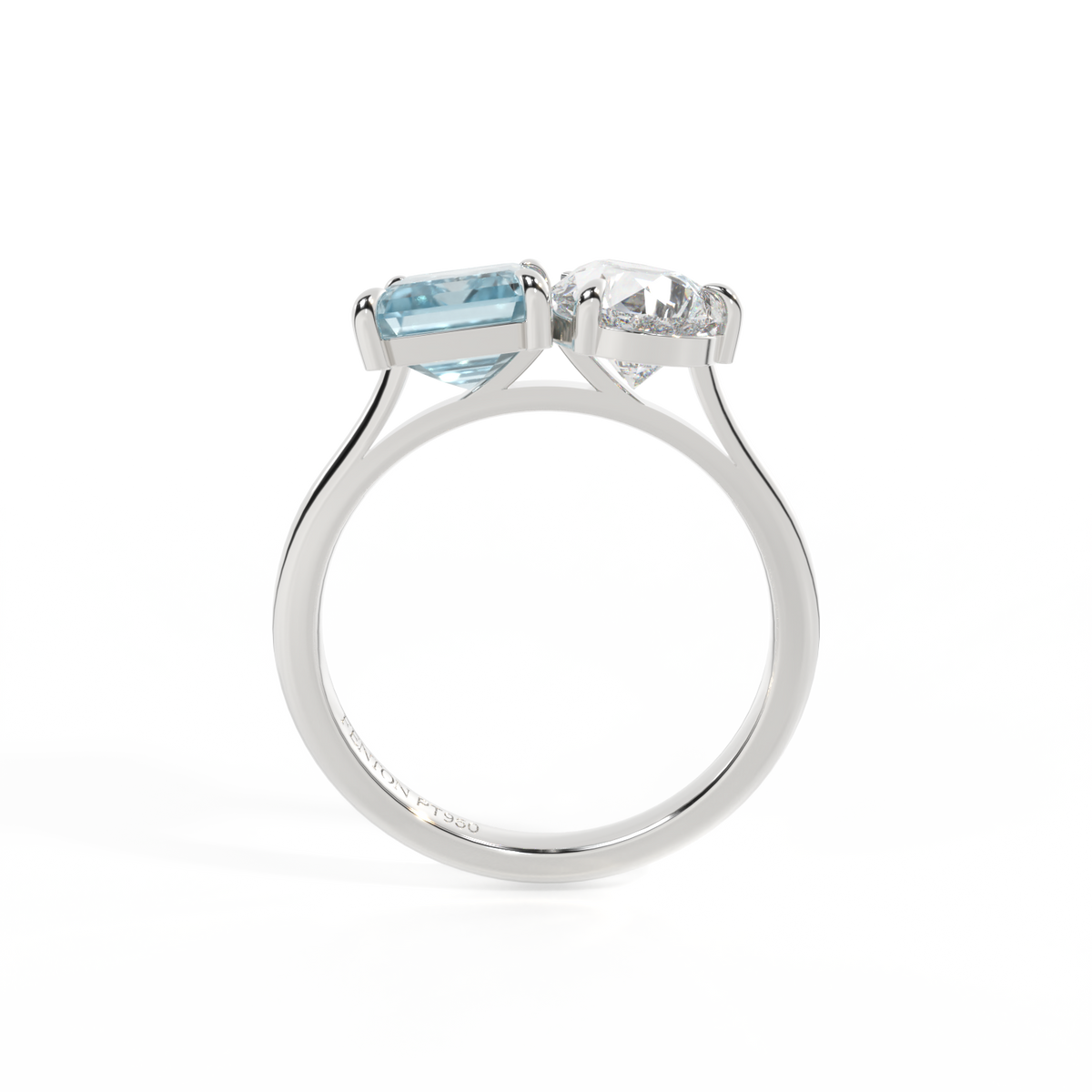 Lab Grown Solar Diamond Toi Et Moi Emerald Aquamarine Platinum Ring