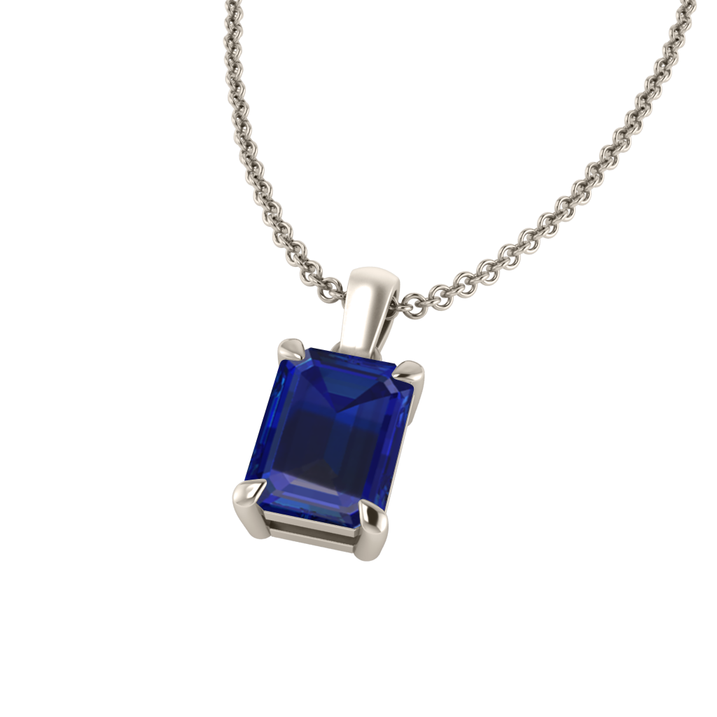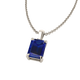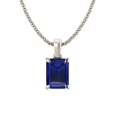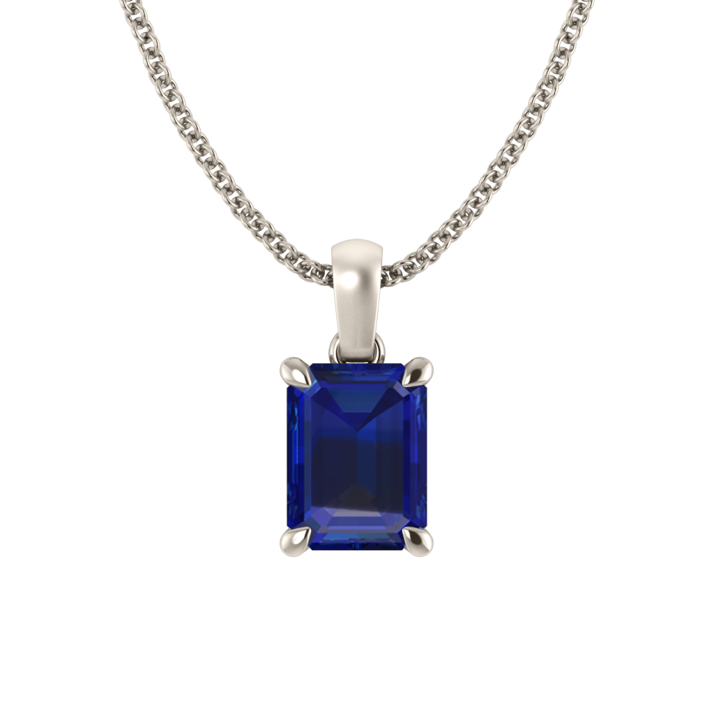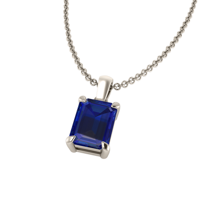 Le collier à pendentif Solitaire est un favori étincelant, combinant l'intemporalité avec une touche de couleur. Le pendentif Émeraude cut Saphir Bleu se balance élégamment sur une chaîne solide et recyclée 18K Or Blanc mesurant 18 pouces et ajustable à une longueur plus courte de 16 pouces.