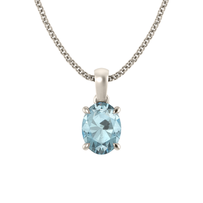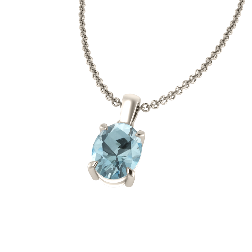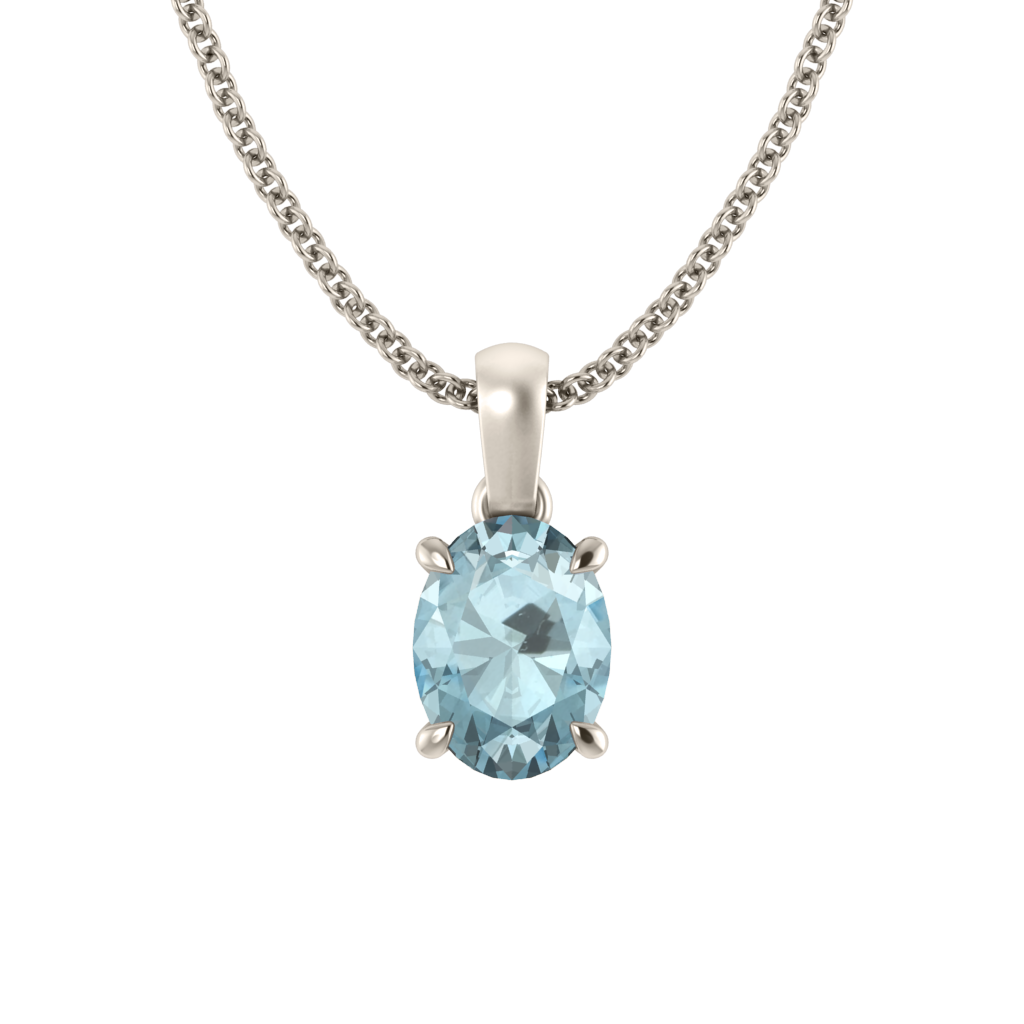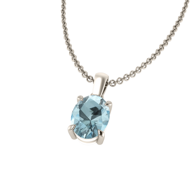 Le collier à pendentif Solitaire est un favori étincelant, combinant l'intemporalité avec une touche de couleur. Le pendentif Ovale cut Aigue-Marine se balance élégamment sur une chaîne solide et recyclée 18K Or Blanc mesurant 18 pouces et ajustable à une longueur plus courte de 16 pouces.