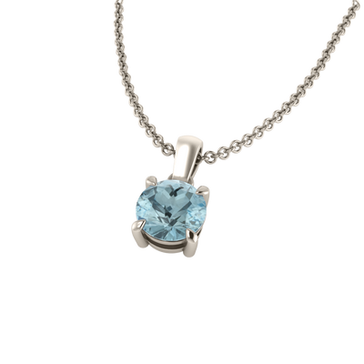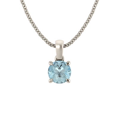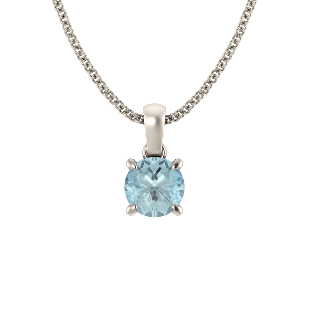 Le collier à pendentif Solitaire est un favori étincelant, combinant l'intemporalité avec une touche de couleur. Le pendentif Rond cut Aigue-Marine se balance élégamment sur une chaîne solide et recyclée 18K Or Blanc mesurant 18 pouces et ajustable à une longueur plus courte de 16 pouces.