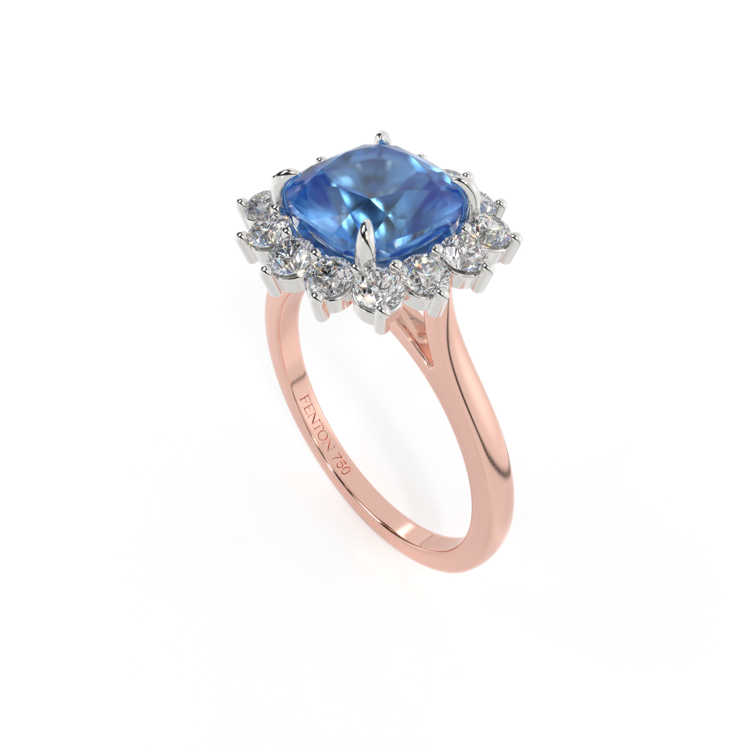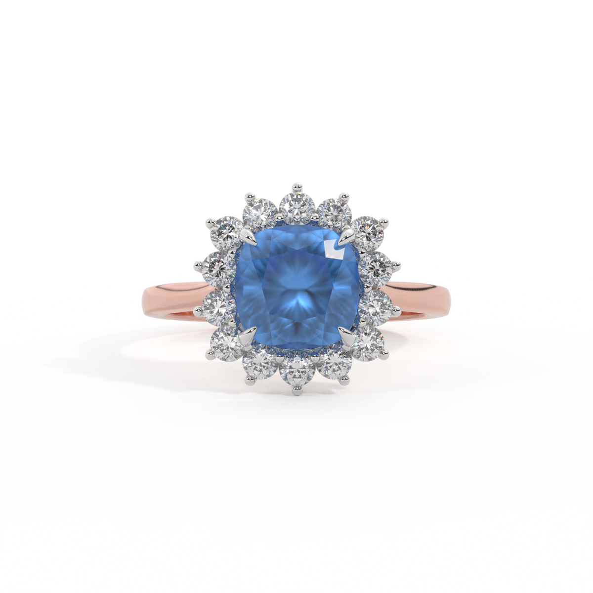 Star Cushion Blue Sapphire 18K Rose Gold Ring