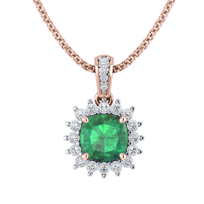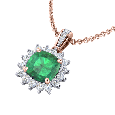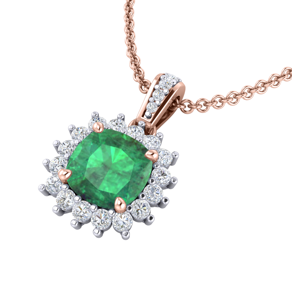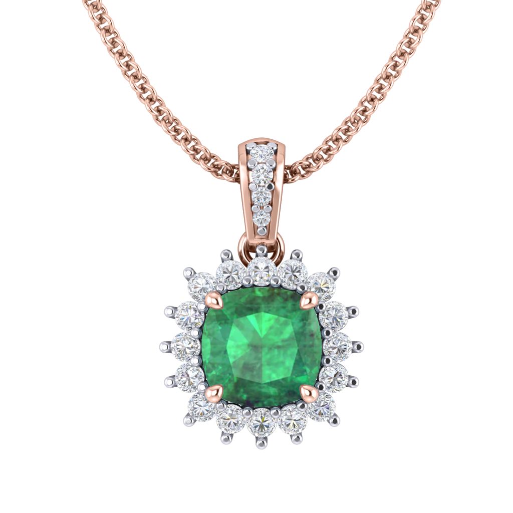 Brillez de jour comme de nuit avec votre collier pendentif Star Émeraude. Émeraude Ce collier pendentif est orné d'un halo en diamant de couleur G/H et de clarté VS et d'une baleine incrustée de diamants étincelants qui renferme la pierre Coussin.