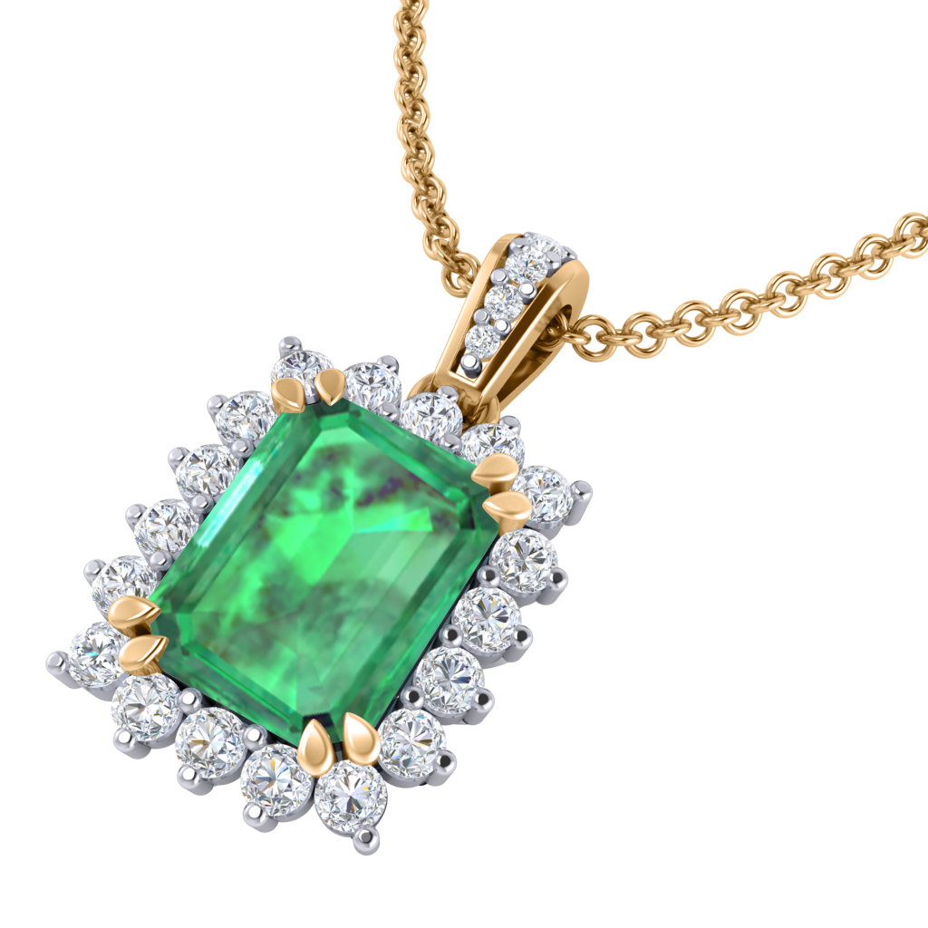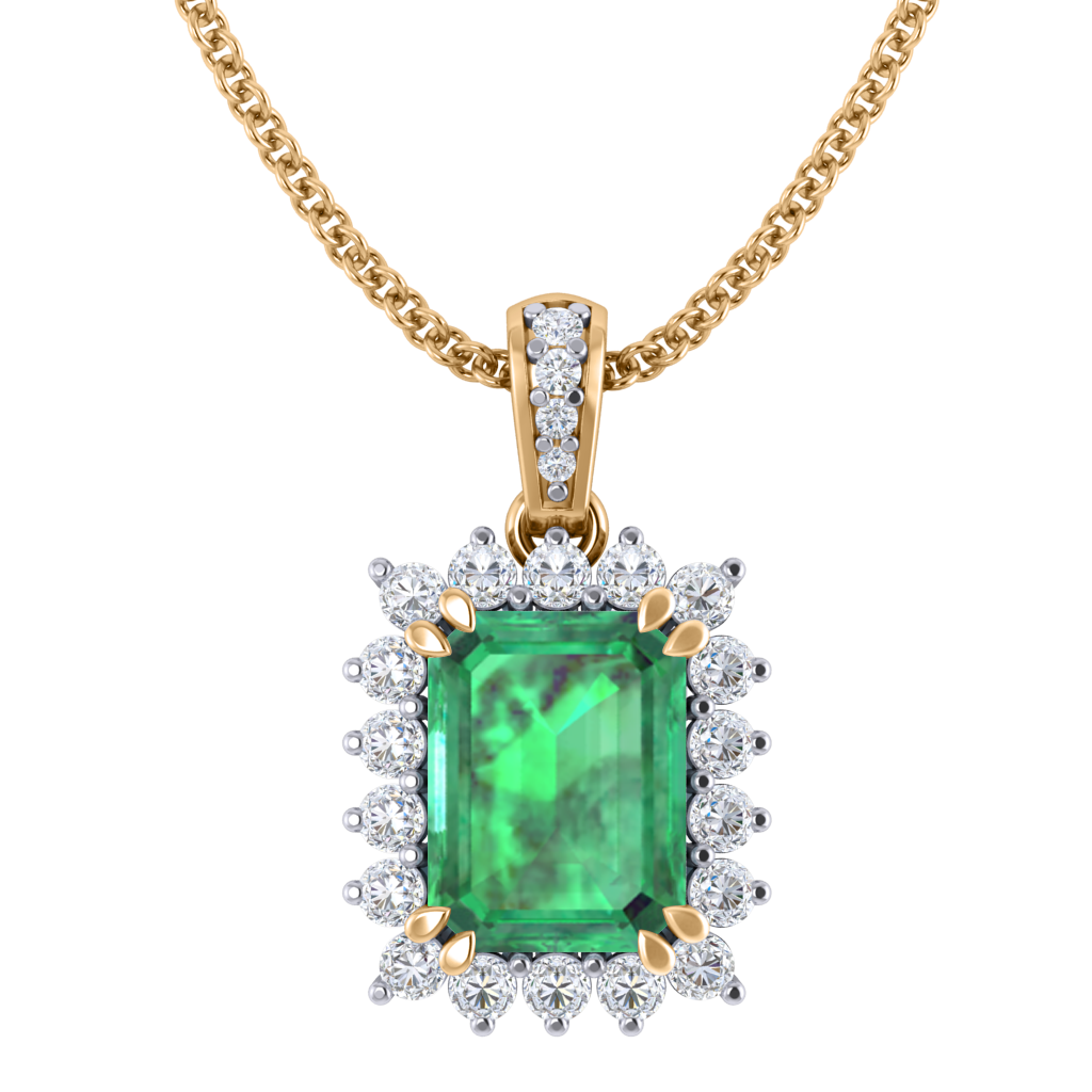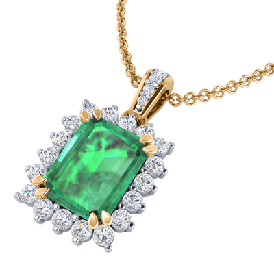 Brillez de jour comme de nuit avec votre collier pendentif Star Émeraude. Émeraude Ce collier pendentif est orné d'un halo en diamant de couleur G/H et de clarté VS et d'une baleine incrustée de diamants étincelants qui renferme la pierre Émeraude.