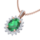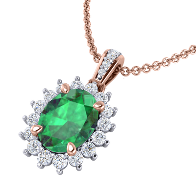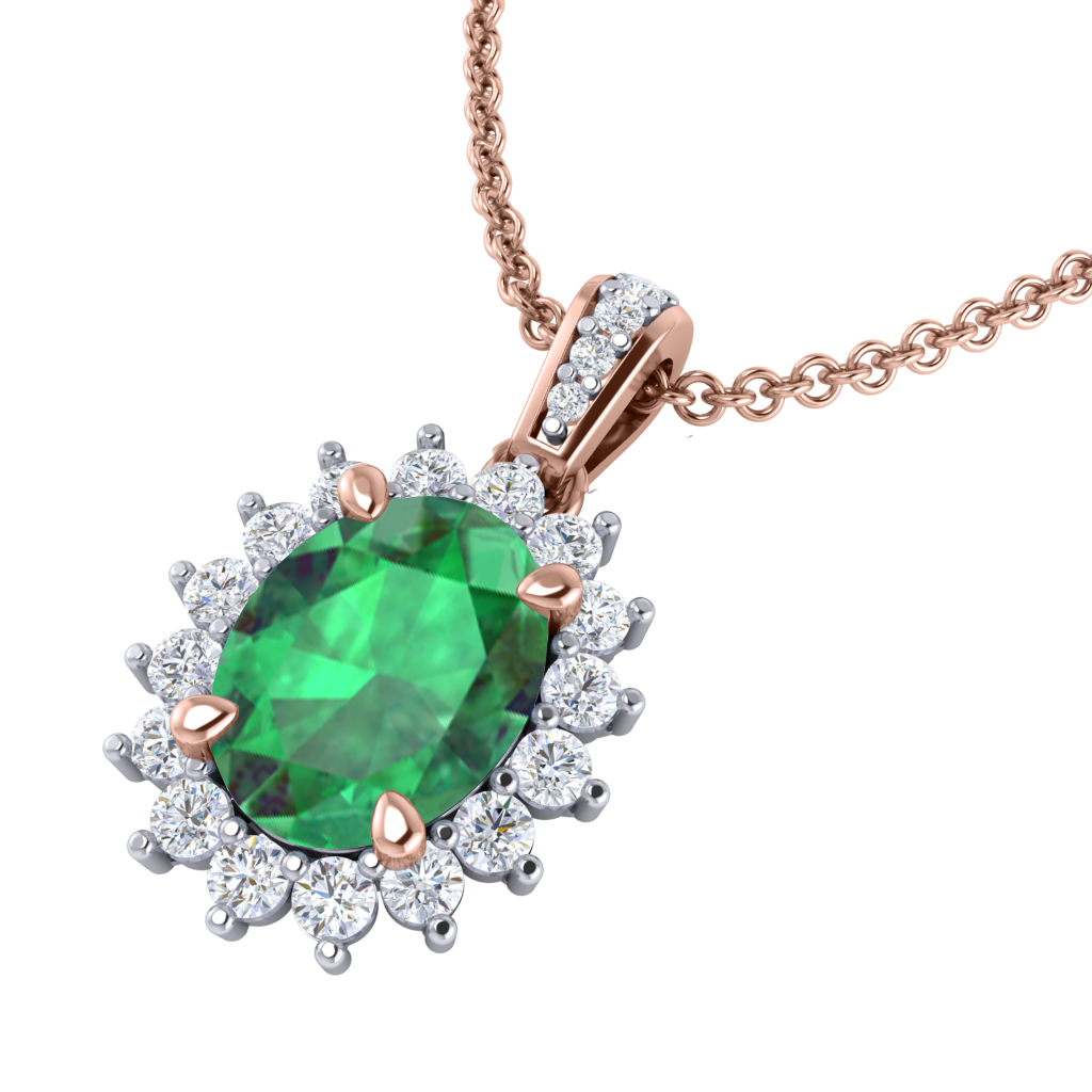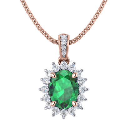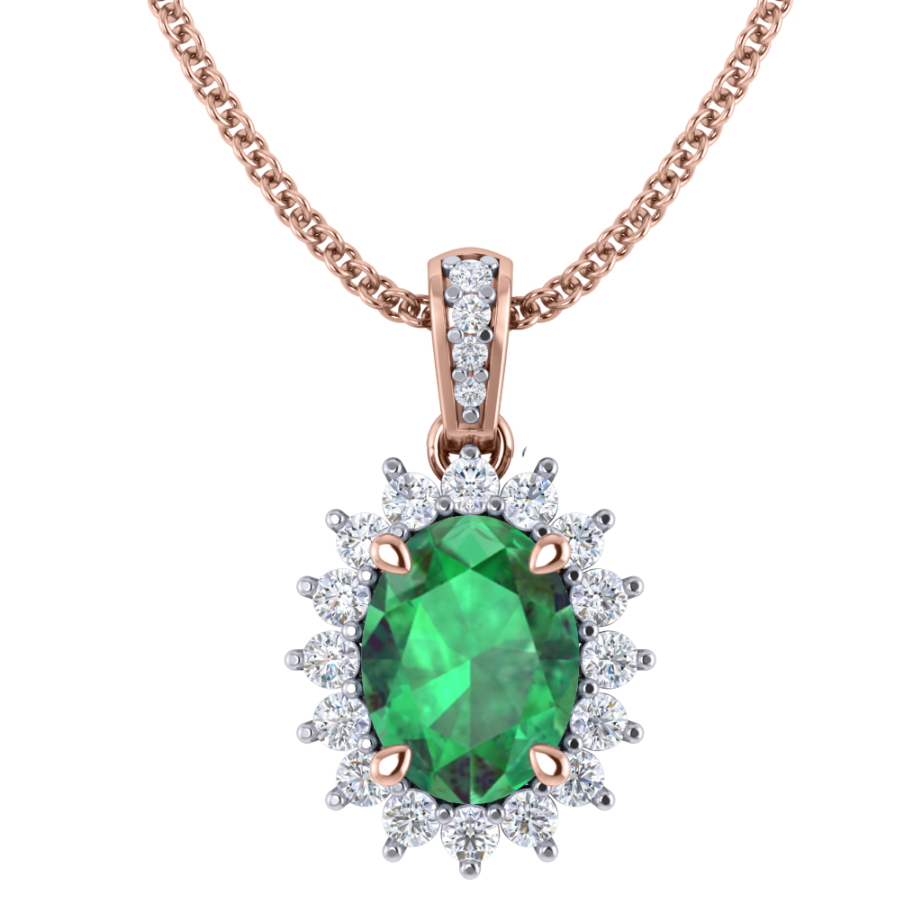 Brillez de jour comme de nuit avec votre collier pendentif Star Émeraude. Émeraude Ce collier pendentif est orné d'un halo en diamant de couleur G/H et de clarté VS et d'une baleine incrustée de diamants étincelants qui renferme la pierre Ovale.