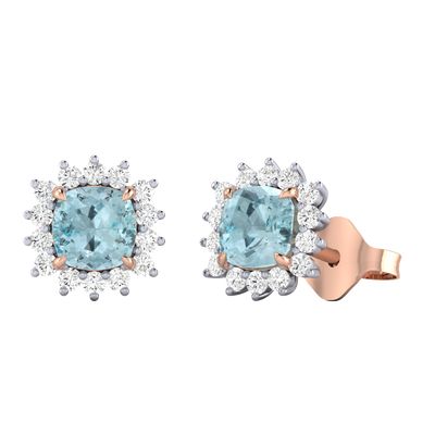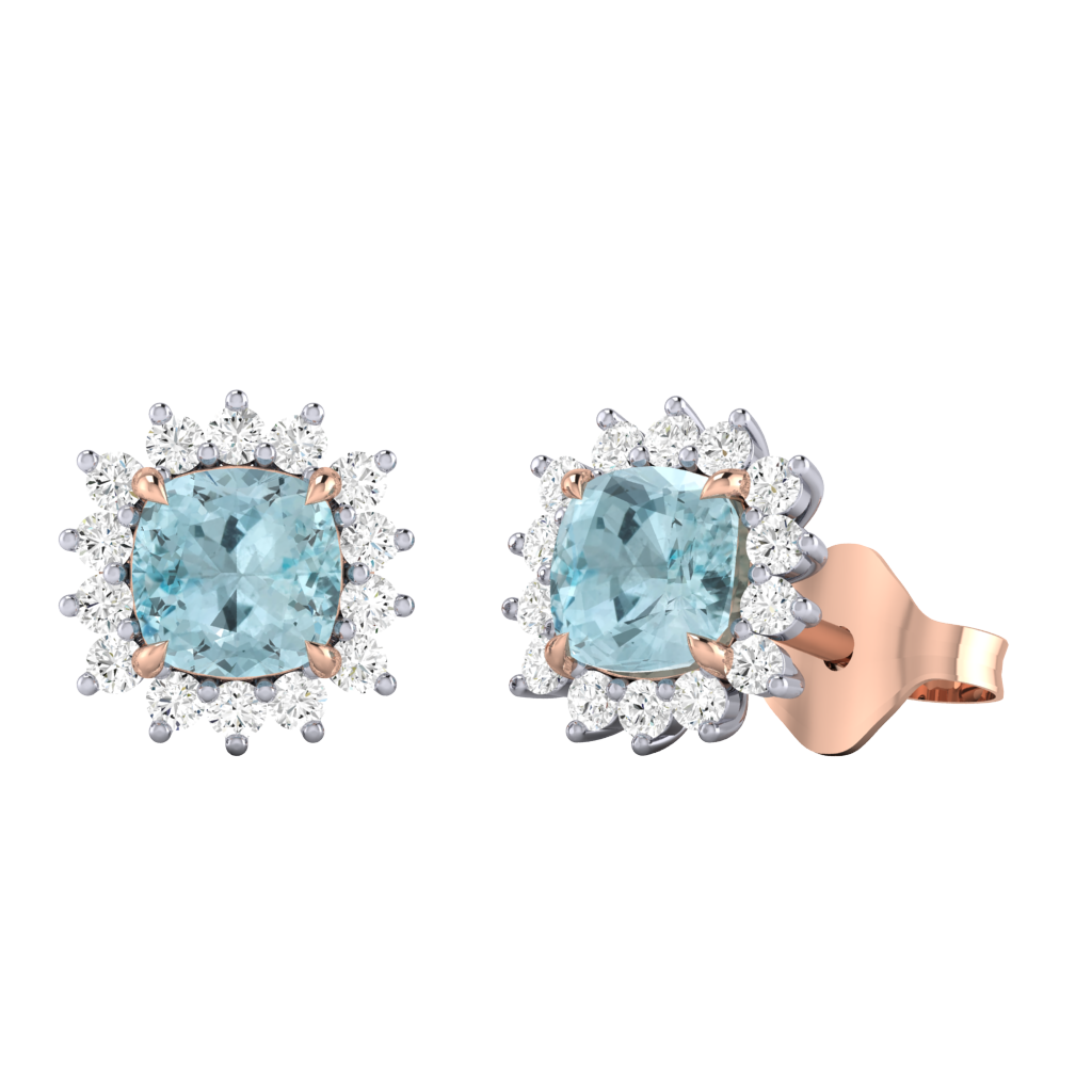 Star Stud Cushion Aquamarine 18K Rose Gold Earrings