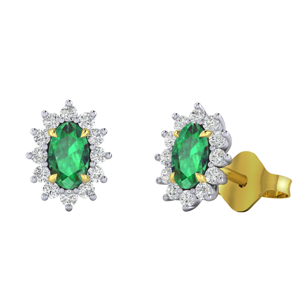 Star Stud Oval Emerald 18K Yellow Gold Earrings