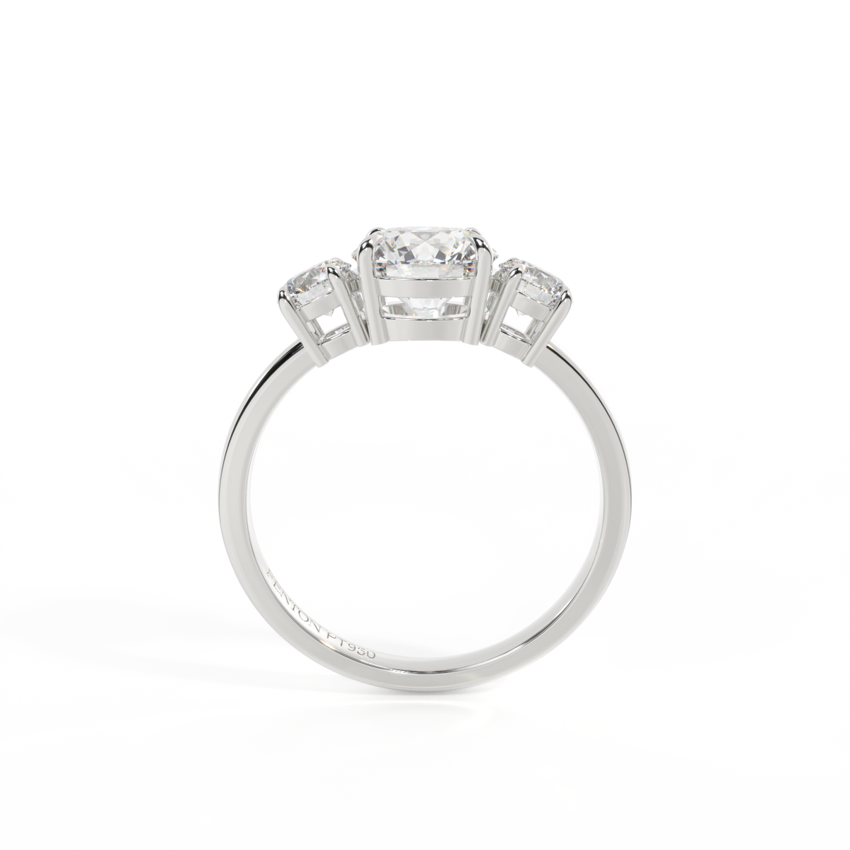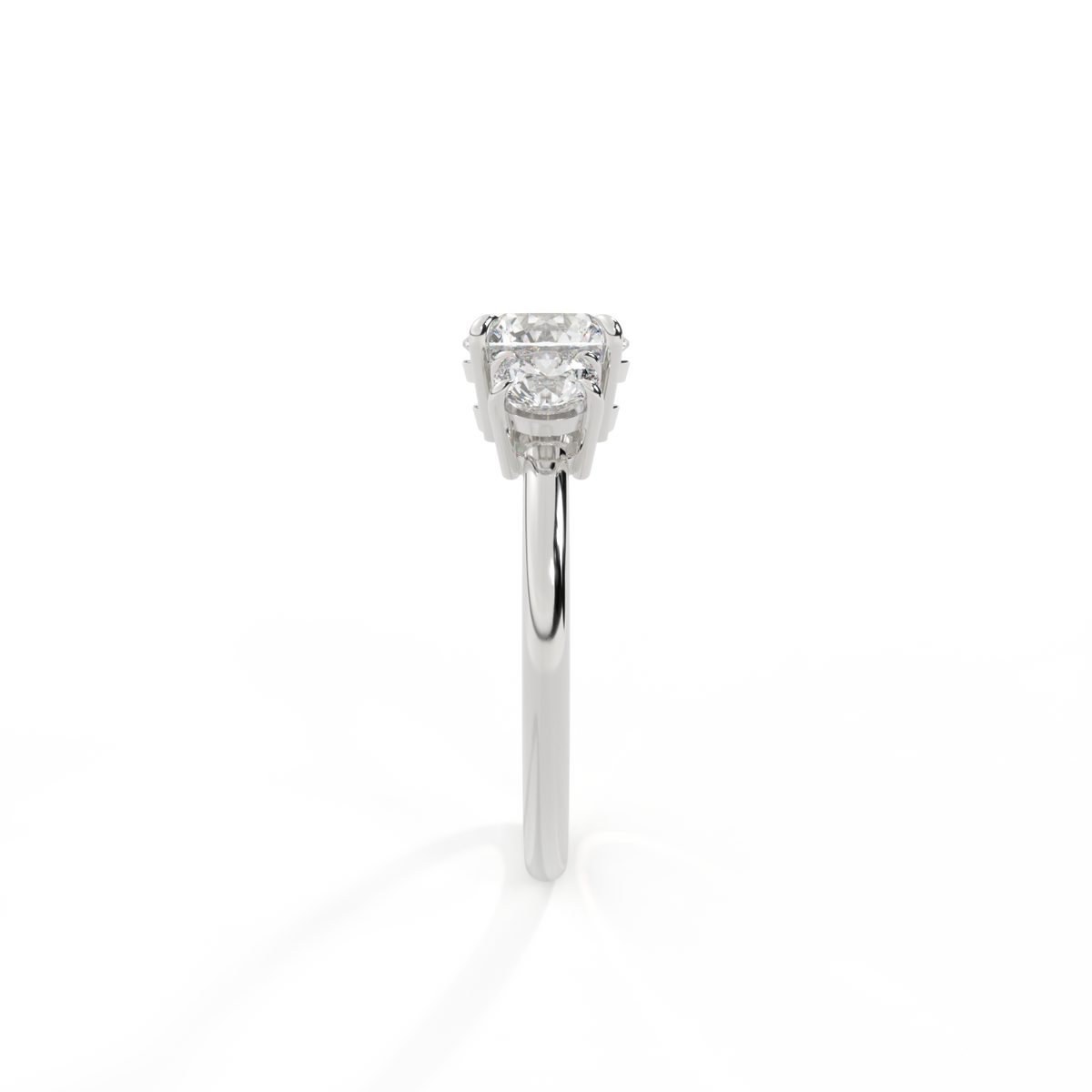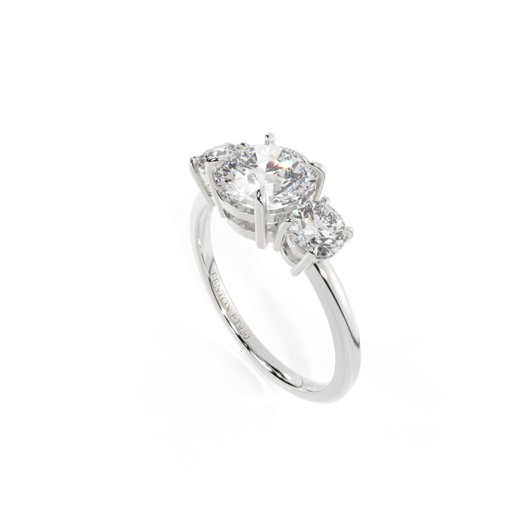 Proof that three isn't always a crowd, our Lab Grown Diamond Trilogy Ring unites a sparkling Lab Grown Diamond center stone with two surrounding Diamond each set in a secure four single- or double claw setting and complimenting the exquisite sparkle of your Lab Grown Diamond stone. Your Oval Lab Grown Diamond stone has a GH V/S quality rating and is set in a simple yet elegant gallery feeding smoothly into a sleek and simple Platinum band ranging from 1.90 - 2.20mm.
