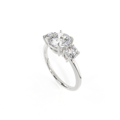 The Lab Grown Diamond Trilogy is a perfect choice for a special occasion or an engagement ring as the trilogy of three stones represent the past, present and future of your relationship or story. This style is available in both a non wed-fit and wed-fit design.