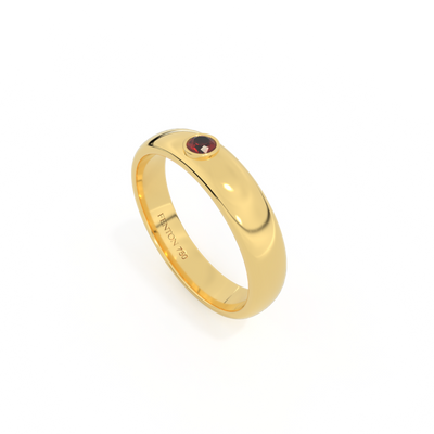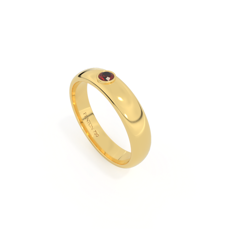 Associez une pierre unique à votre bague Fenton partenaire ou ajoutez une touche à la bande arrondie classique avec la pierre unique. Cette bague a une largeur de 4 mm et est fabriquée en or 18 carats.