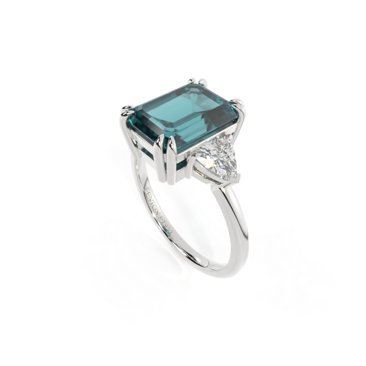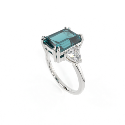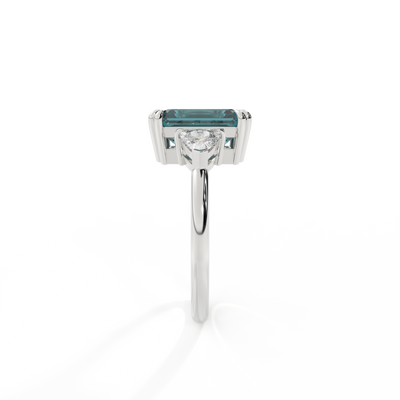 Trilogy Emerald Teal Sapphire Platinum Ring