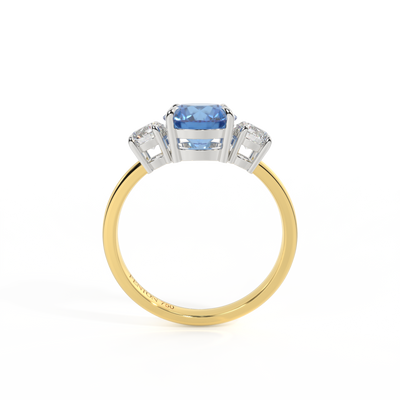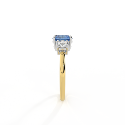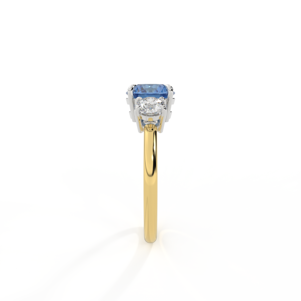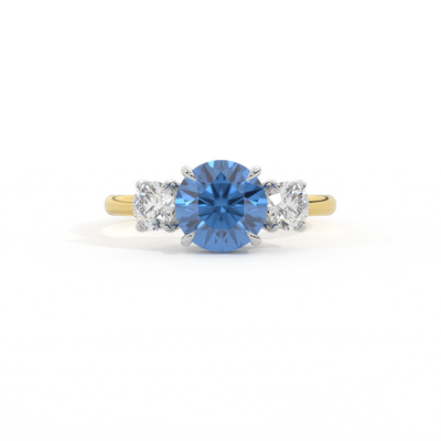 Trilogy Round Blue Sapphire 18K Yellow Gold Ring