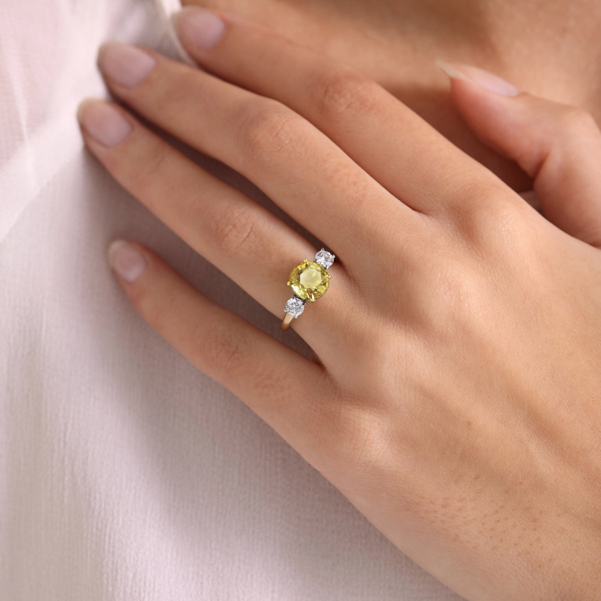 Trilogy Round Yellow Sapphire 18K Yellow Gold Ring