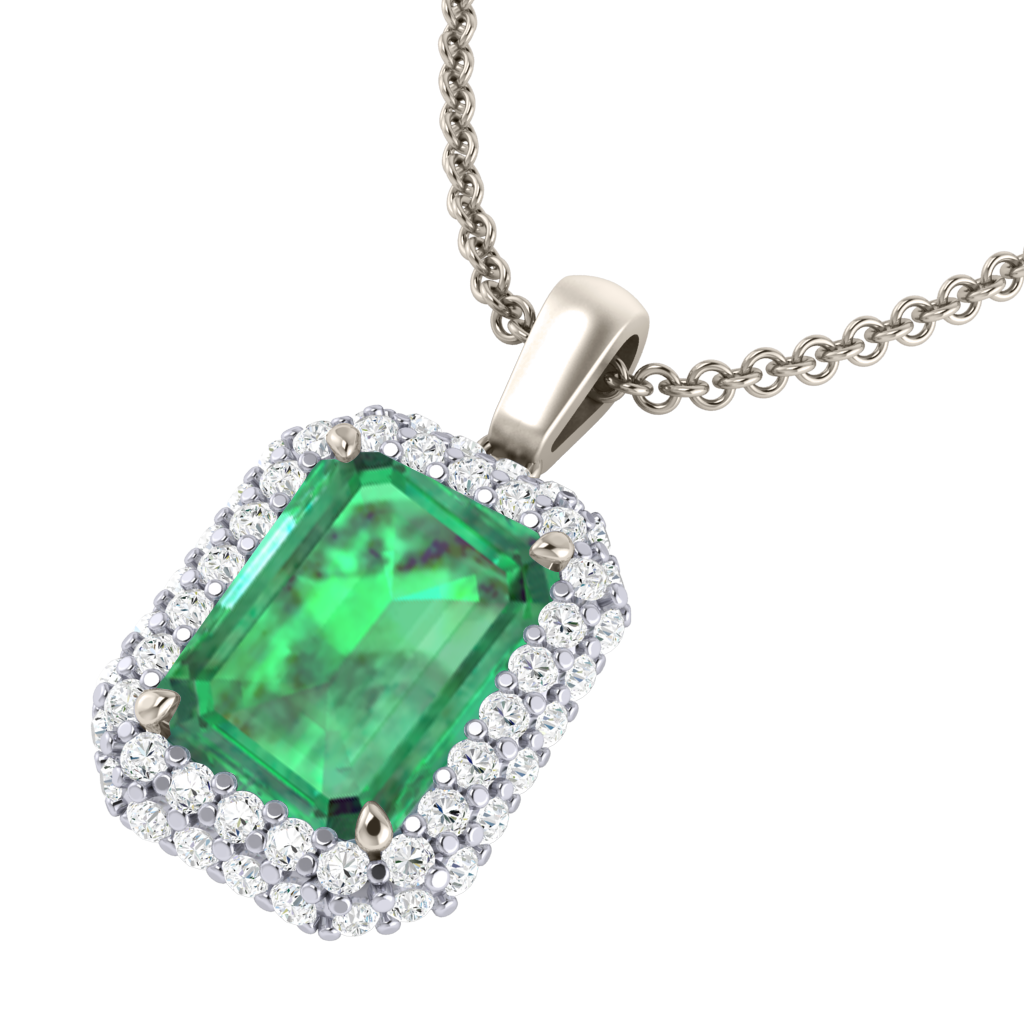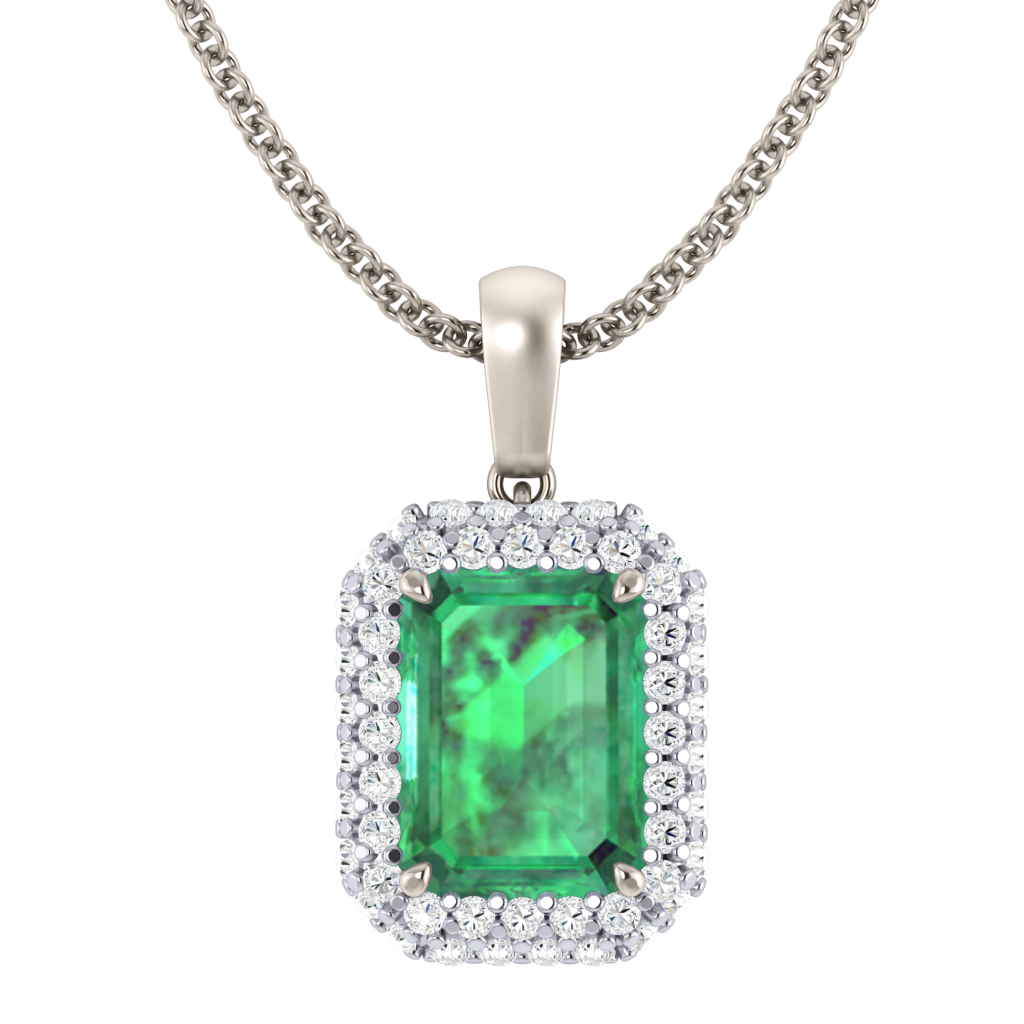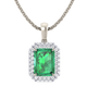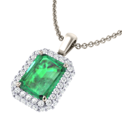 Portez votre Émeraude près de votre cœur avec notre collier à pendentif Vintage. L'étincelant pédant Émeraude cut Émeraude est encadré d'un double halo de diamants de couleur G/H et de pureté VS qui confèrent au collier son esthétique vintage très appréciée, inspirée des bijoux du XVIIIe siècle.
