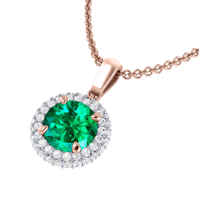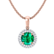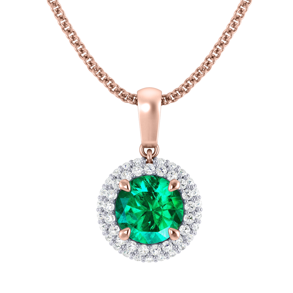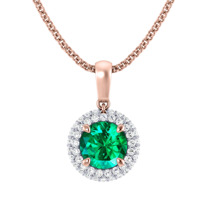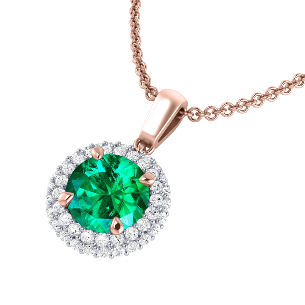 Portez votre Émeraude près de votre cœur avec notre collier à pendentif Vintage. L'étincelant pédant Rond cut Émeraude est encadré d'un double halo de diamants de couleur G/H et de pureté VS qui confèrent au collier son esthétique vintage très appréciée, inspirée des bijoux du XVIIIe siècle.
