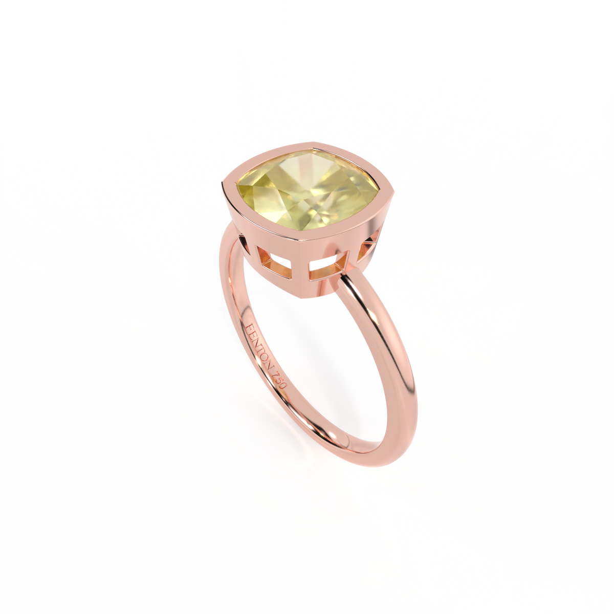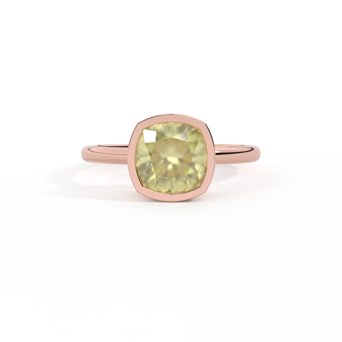 Bezel Cushion Yellow Sapphire 18K Rose Gold Ring