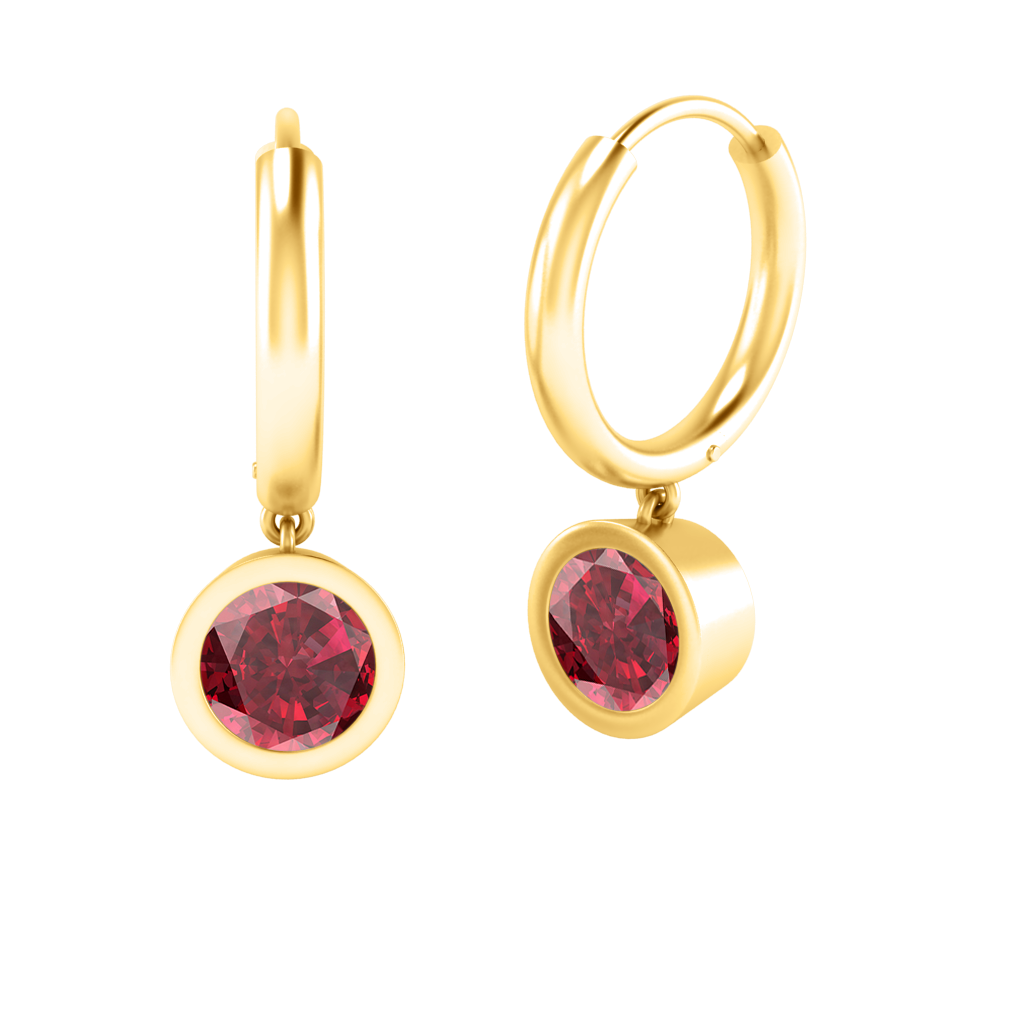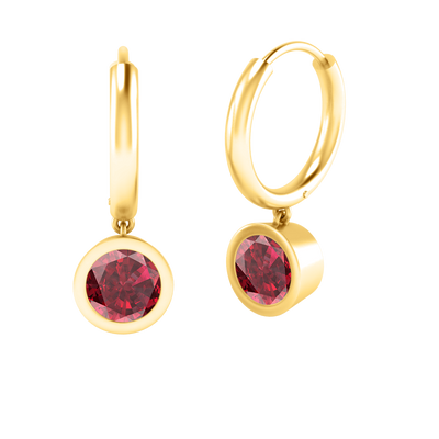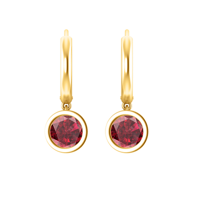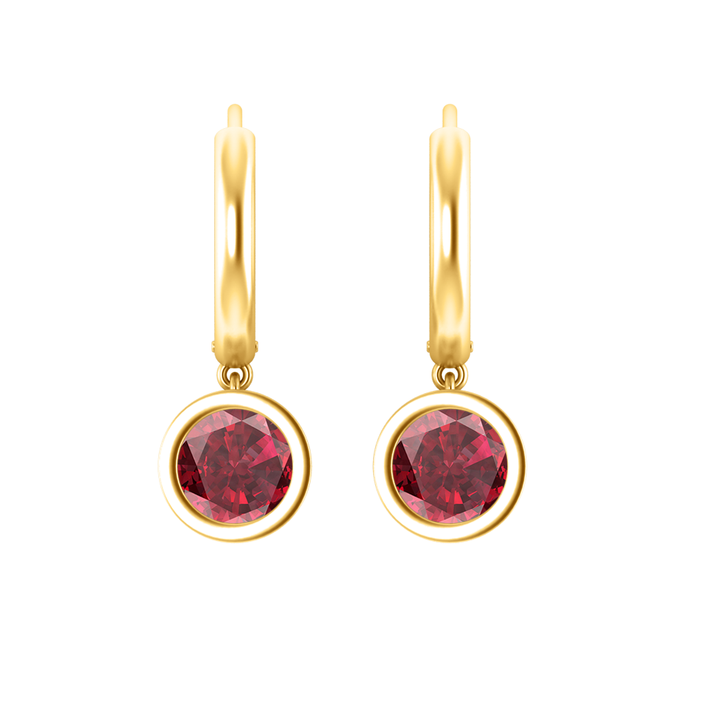 Bezel Drop Round Ruby 18K Yellow Gold Earrings