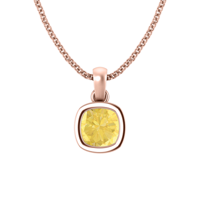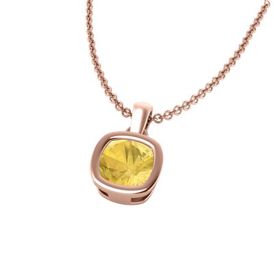Bezel Cushion Cut Yellow Sapphire 18K Rose Gold Pendant Necklace