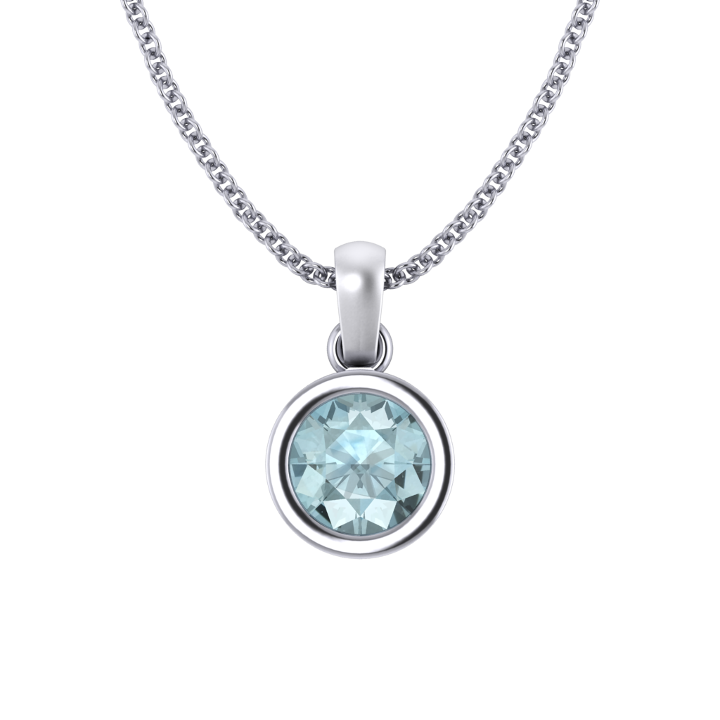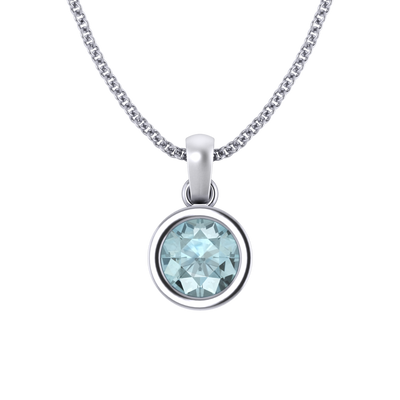 Bezel Round Cut Aquamarine 18K White Gold Pendant Necklace