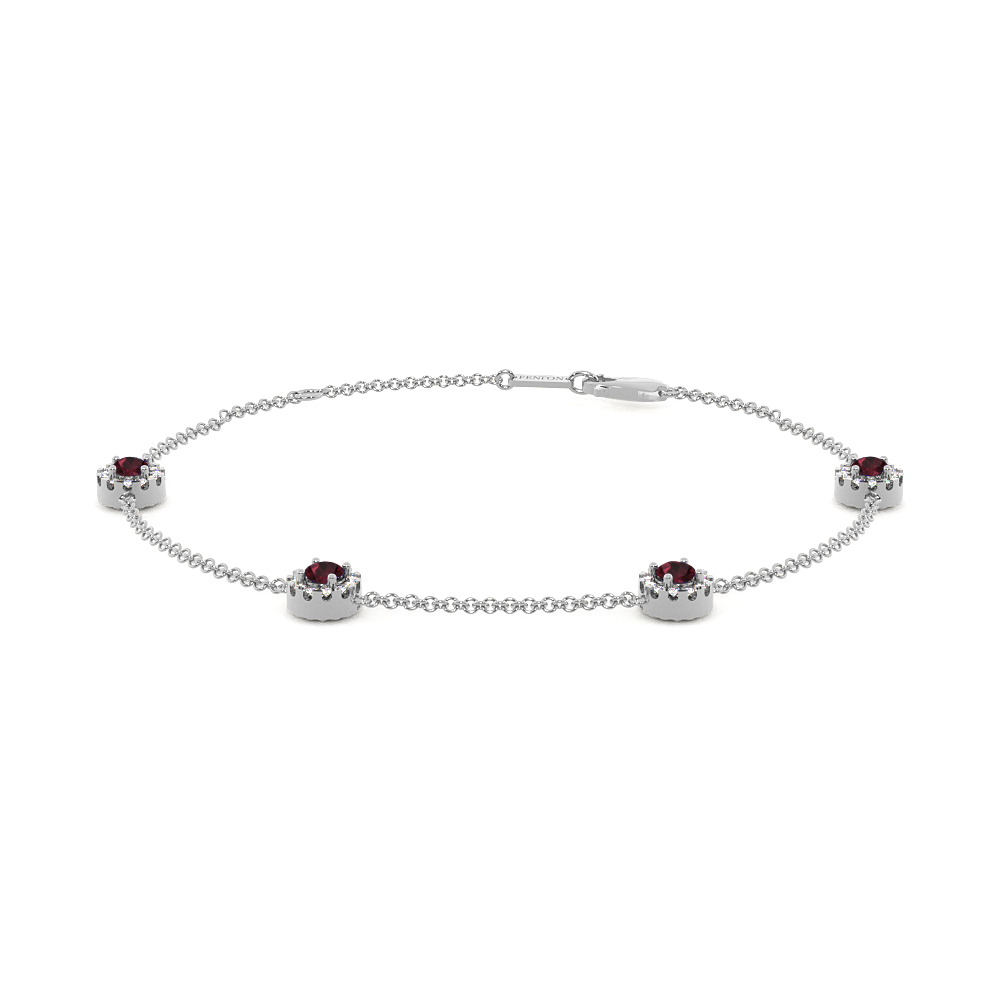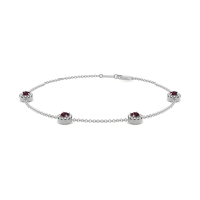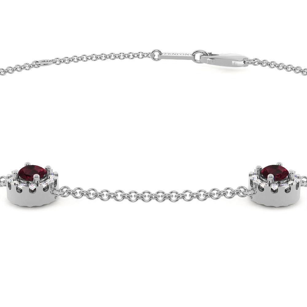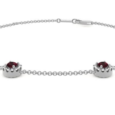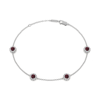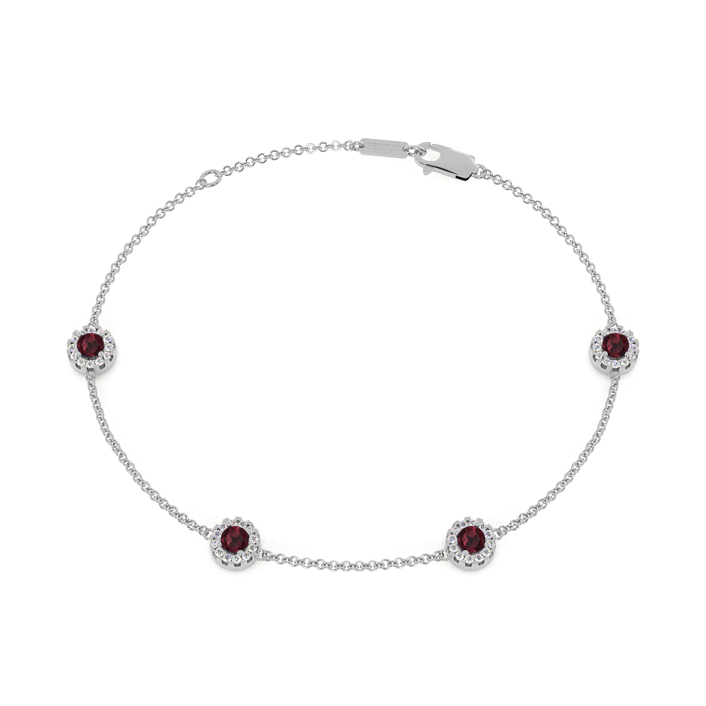 Notre bracelet classique Grenat Halo allie élégance intemporelle et pierres précieuses étincelantes, pour vous faire scintiller dans tous les sens. Nous avons choisi une chaîne câblée classique pour porter les quatre pierres Grenat scintillantes de 3 mm de diamètre, chacune entourée d'un halo éblouissant de diamants de couleur G/H et de pureté VS. Chaque pierre est soigneusement fixée dans une monture à griffes sécurisée et positionnée à intervalles réguliers pour créer une déclaration étincelante et sans effort sur votre poignet.
