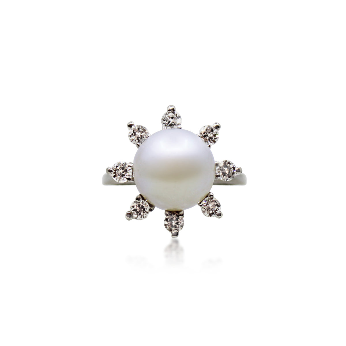Cultured pearl and diamond cluster ring