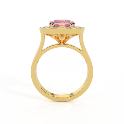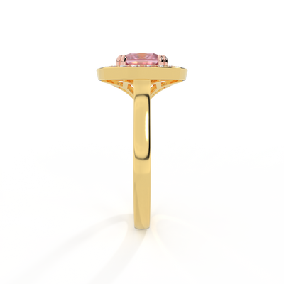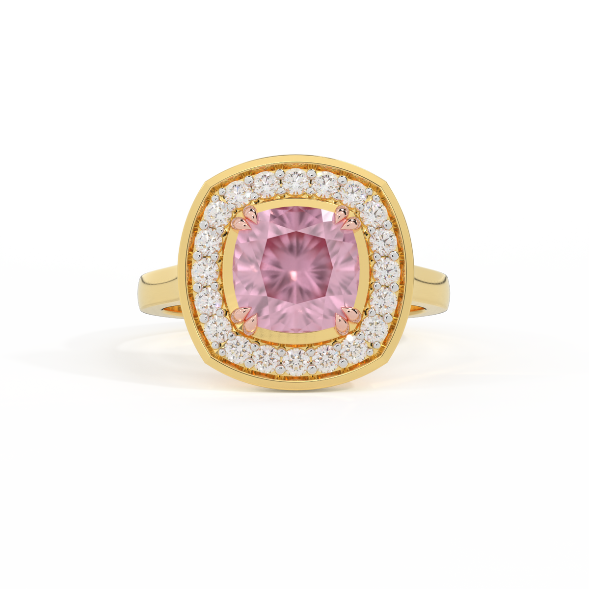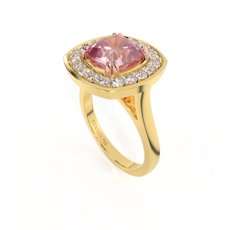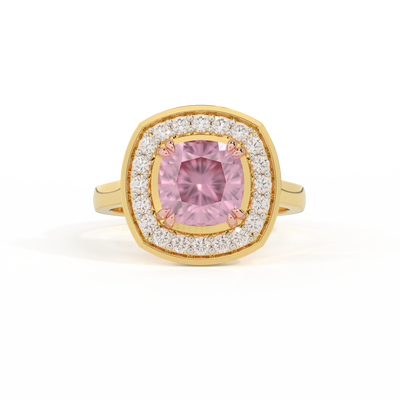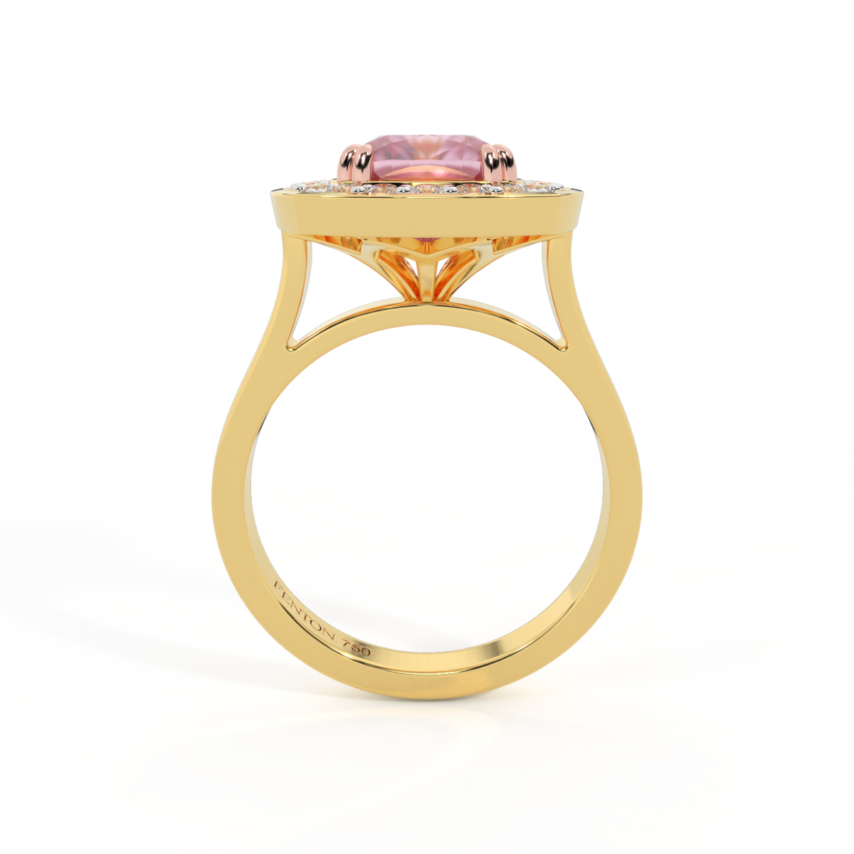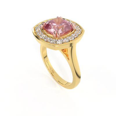 Deco Cushion Pink Sapphire 18K Yellow Gold Ring