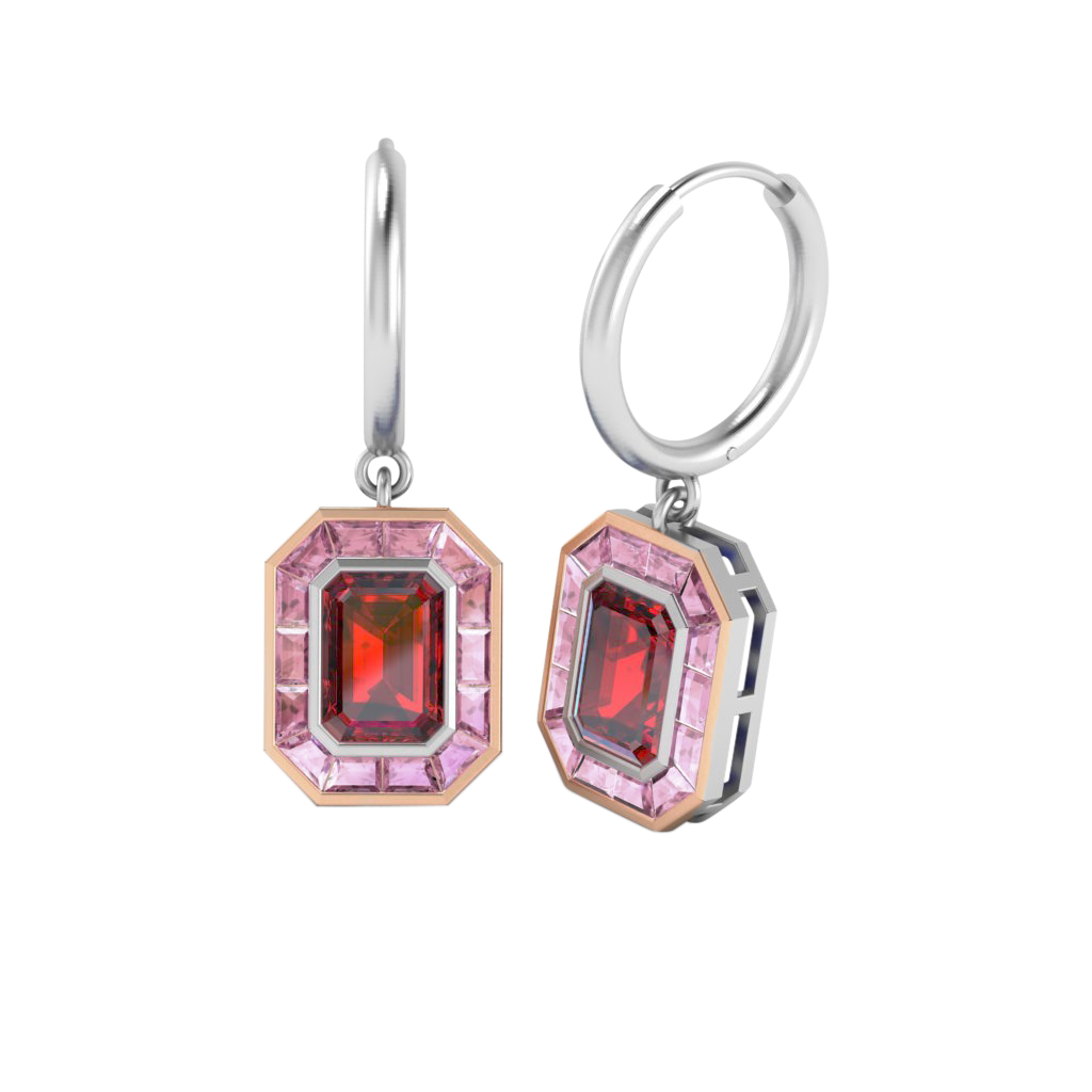 Deco Drop Emerald Ruby 18K White Gold Earrings