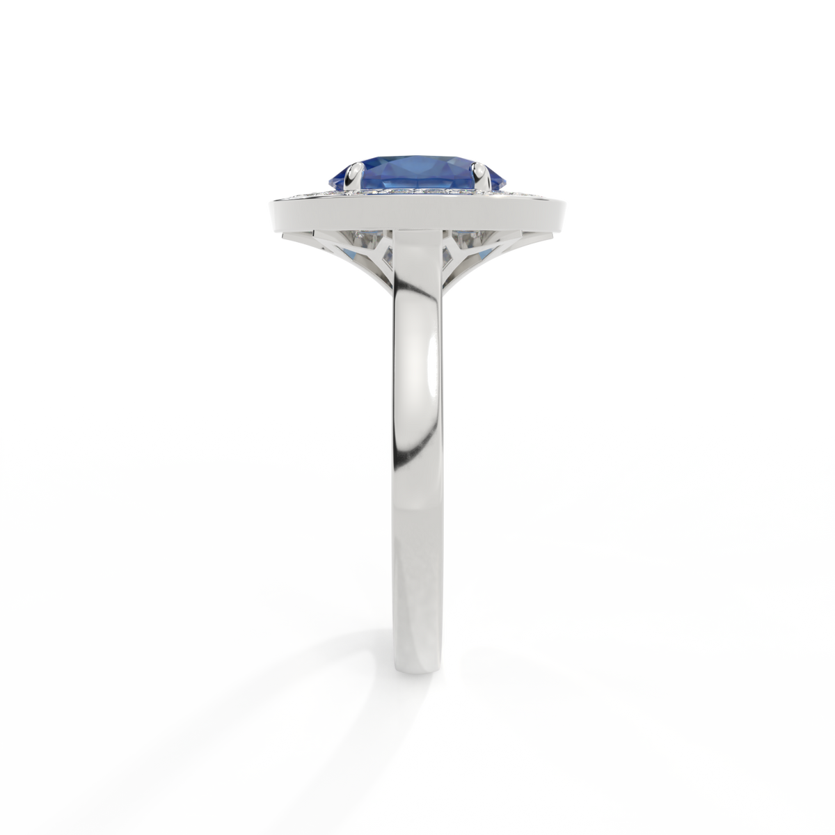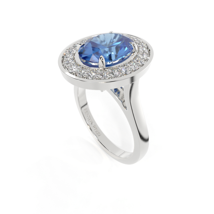 Deco Oval Blue Sapphire Platinum Ring