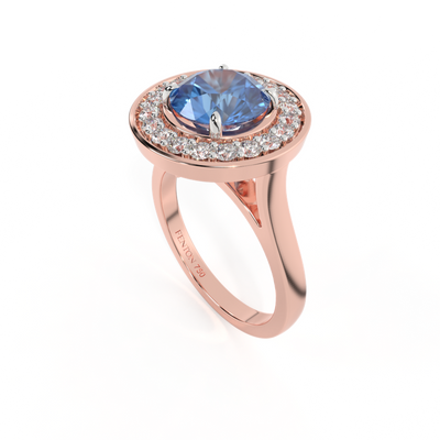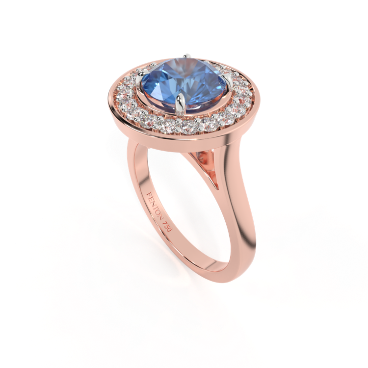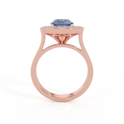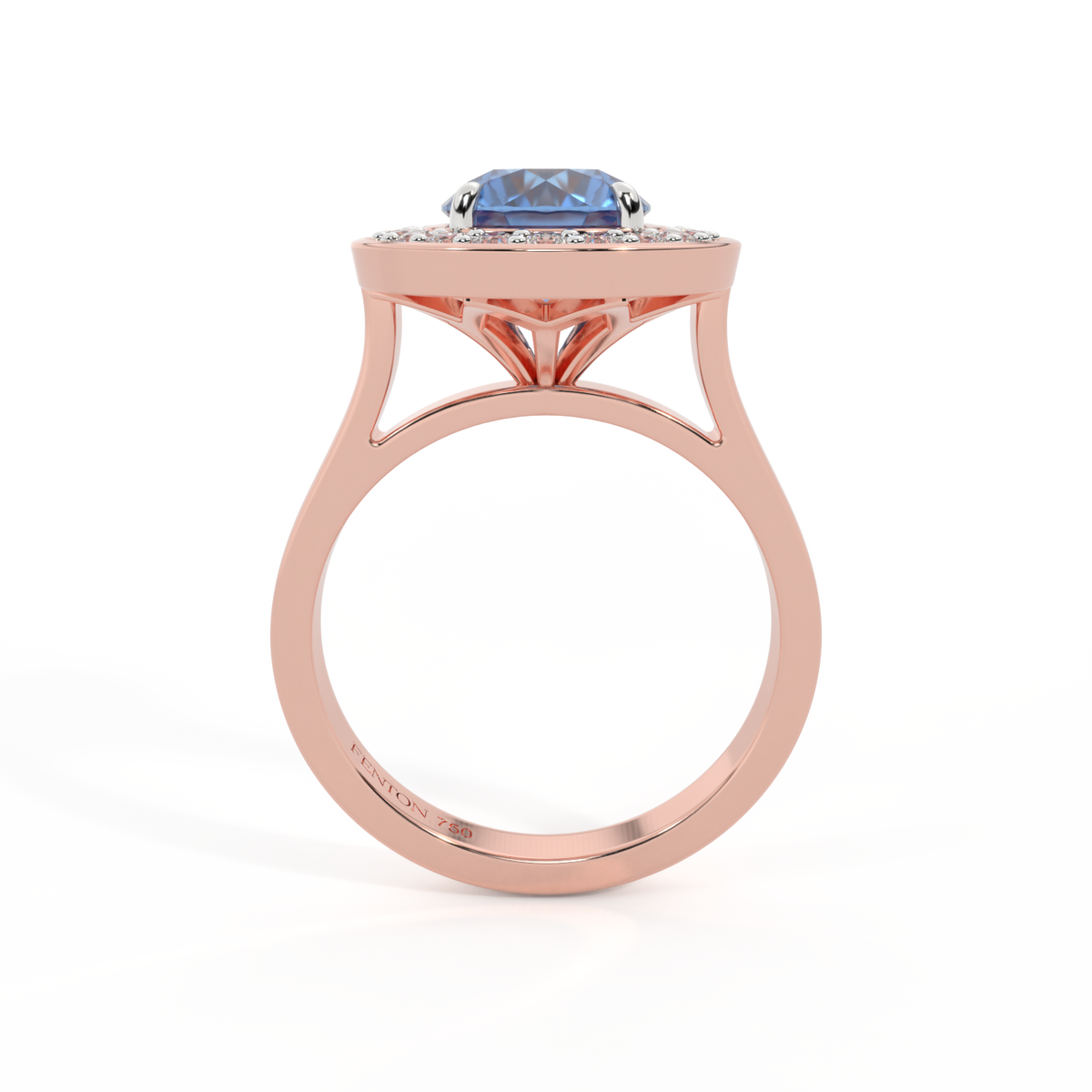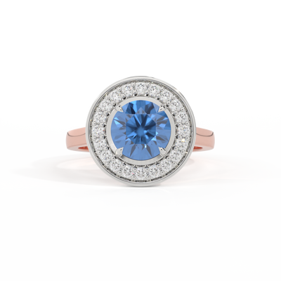 Deco Round Blue Sapphire 18K Rose Gold Ring