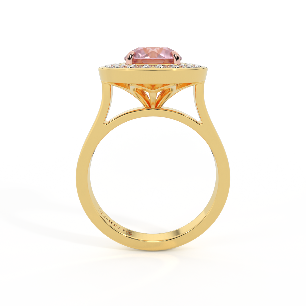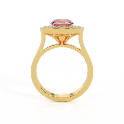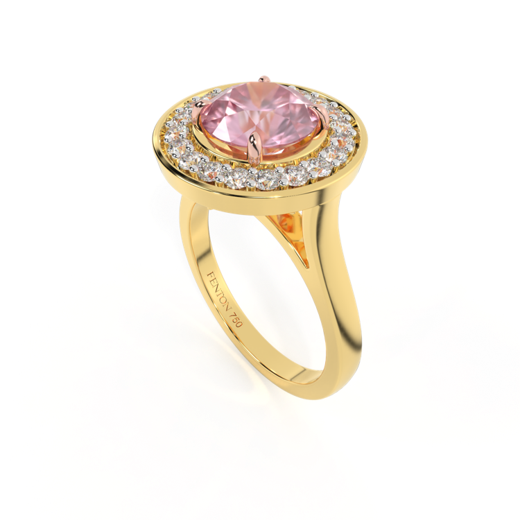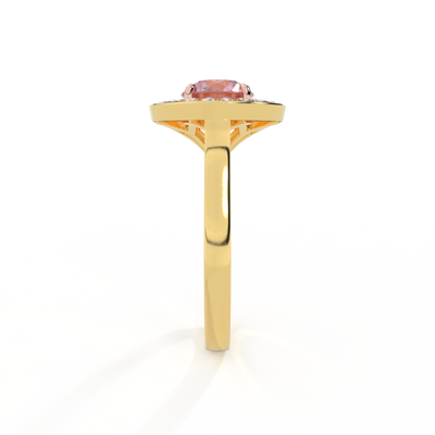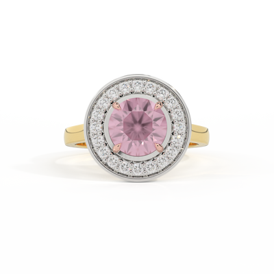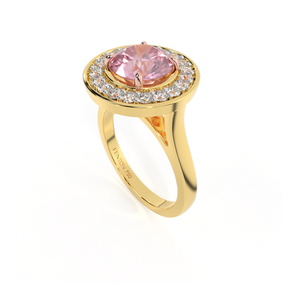 Deco Round Pink Sapphire 18K Yellow Gold Ring