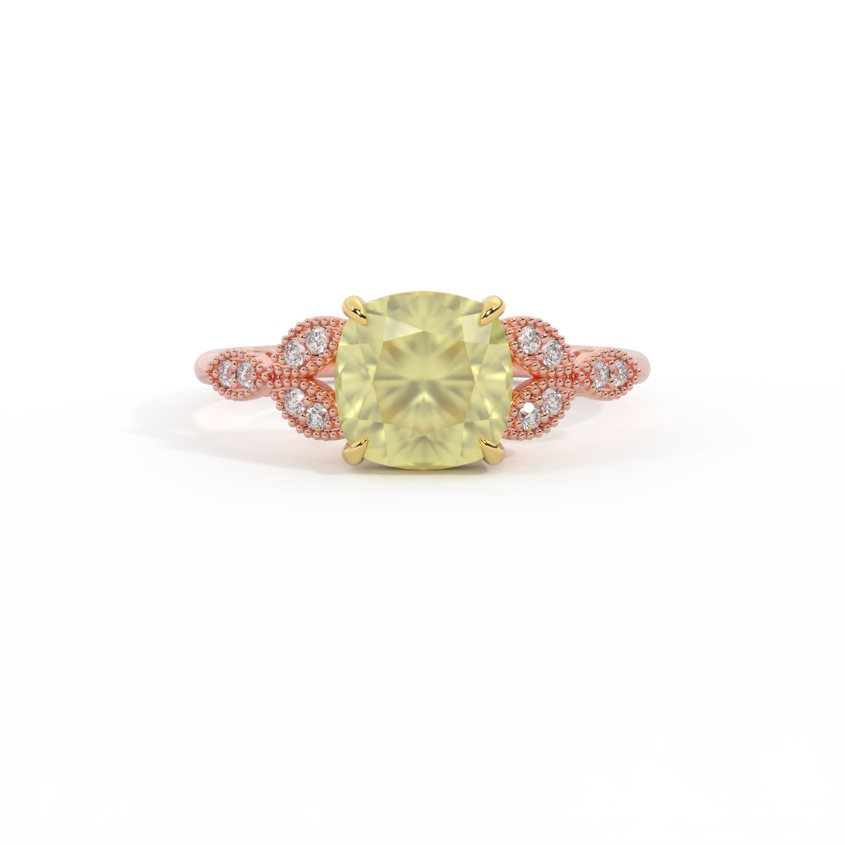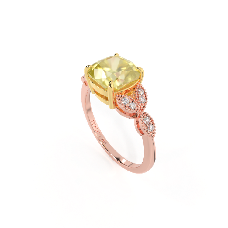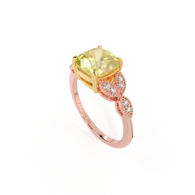 Floral Cushion Yellow Sapphire 18K Rose Gold Ring