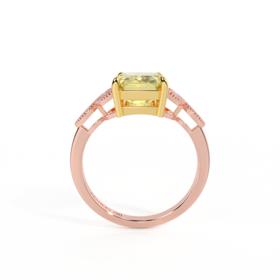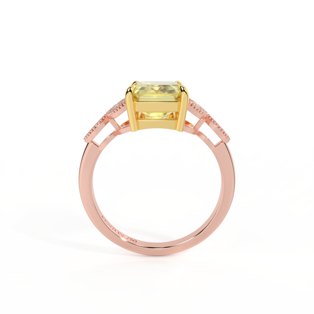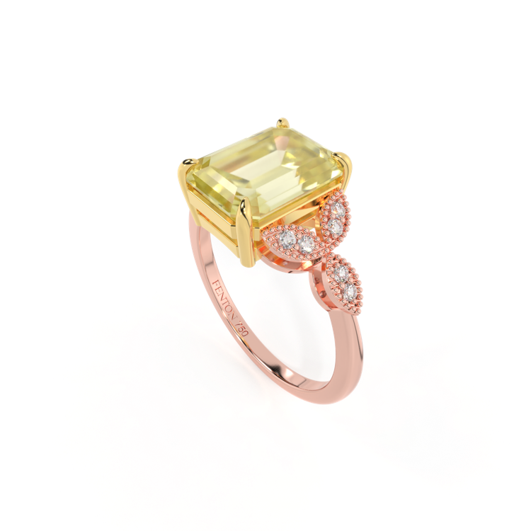La beauté d'une fleur, réimaginée pour l'éternité. Inspiré par le romantisme de l'ère victorienne, ce Émeraude cut Saphir Jaune est accentué par un duo de délicats pétales sertis de diamants avec des détails en millegrain pour une touche d'élégance sur un classique intemporel.