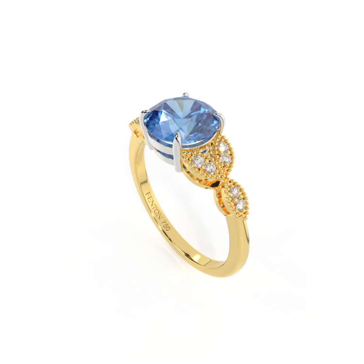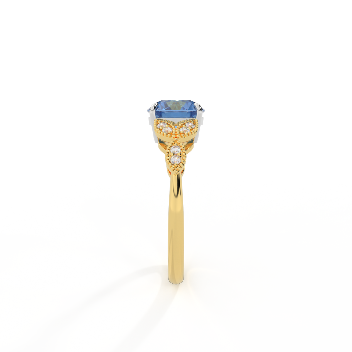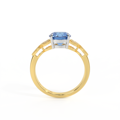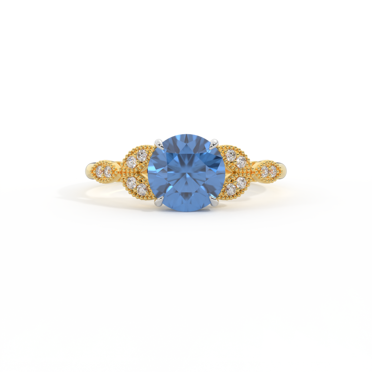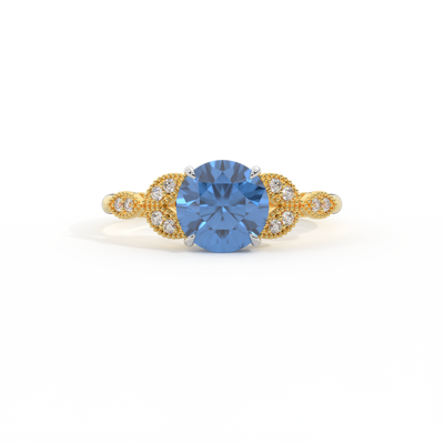 Floral Round Blue Sapphire 18K Yellow Gold Ring