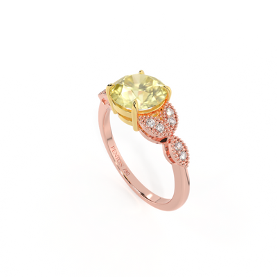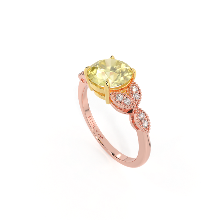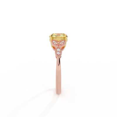 Floral Round Yellow Sapphire 18K Rose Gold Ring