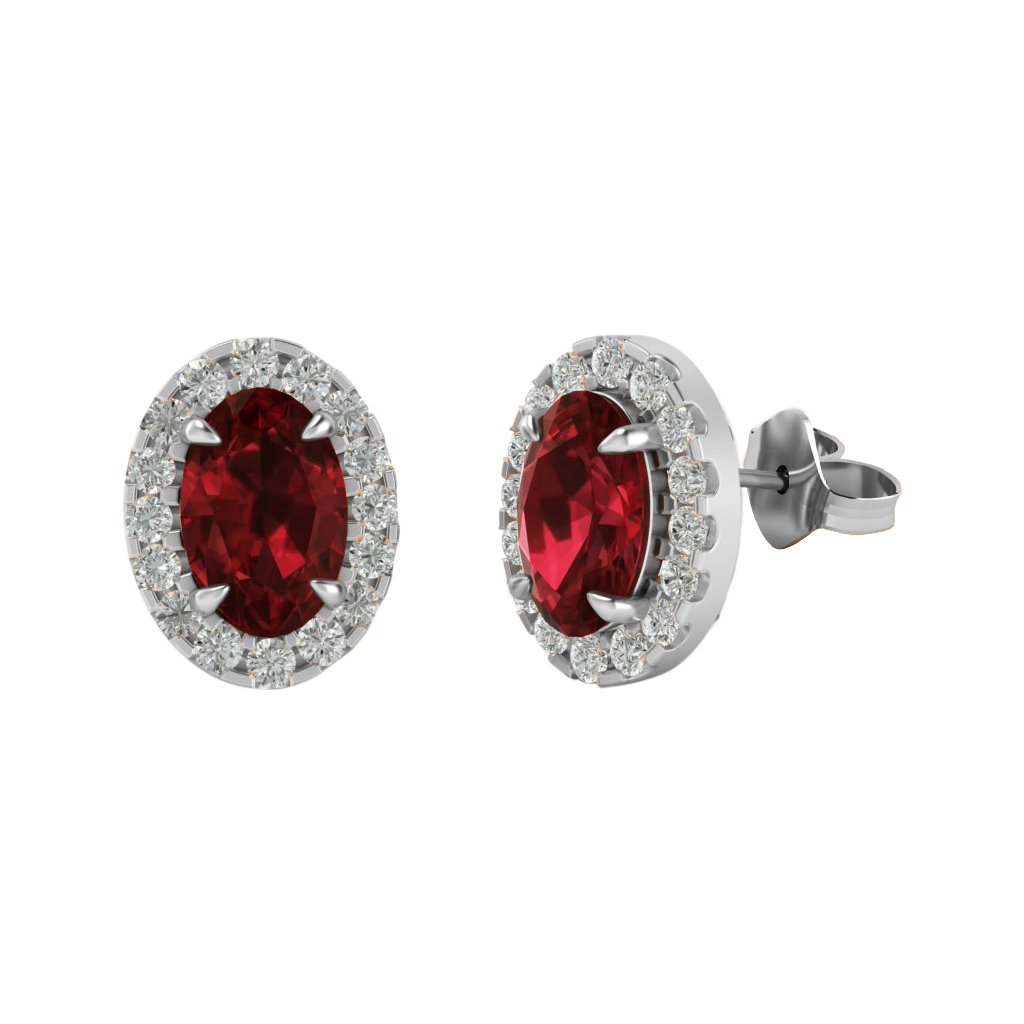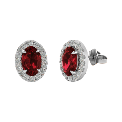 Halo Stud Oval Ruby 18K White Gold Earrings