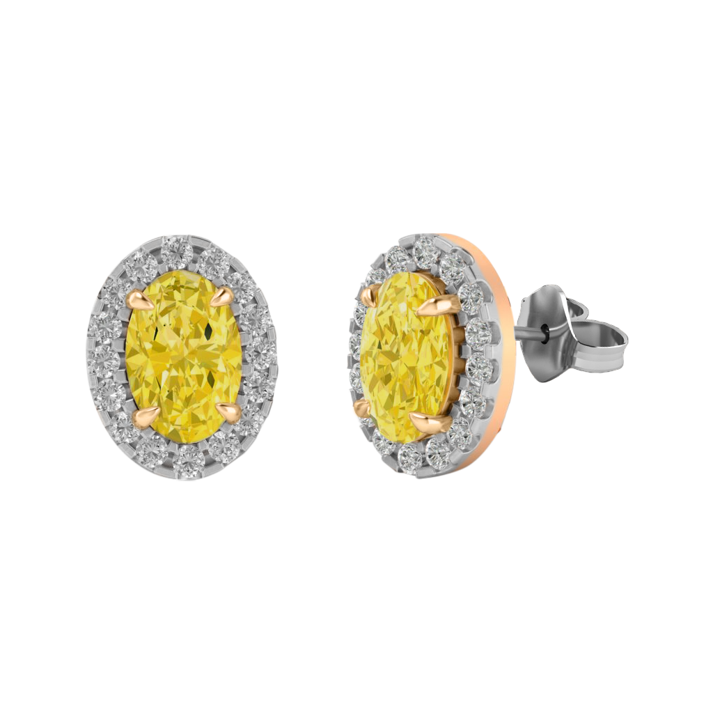 Halo Stud Oval Yellow Sapphire 18K Rose Gold Earrings