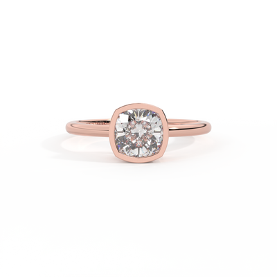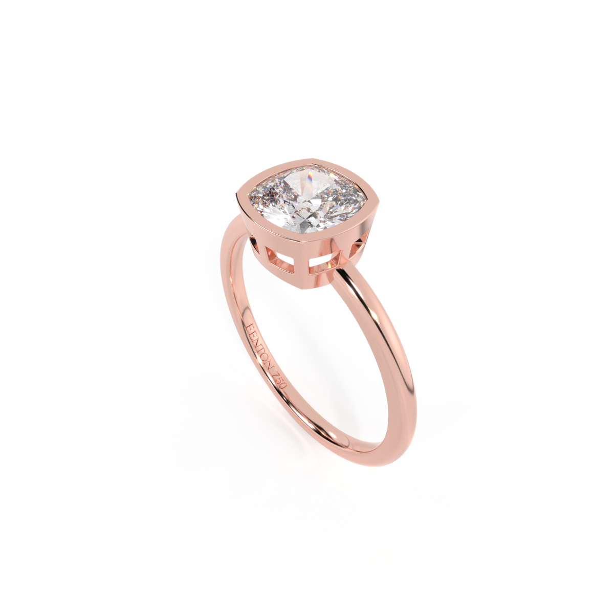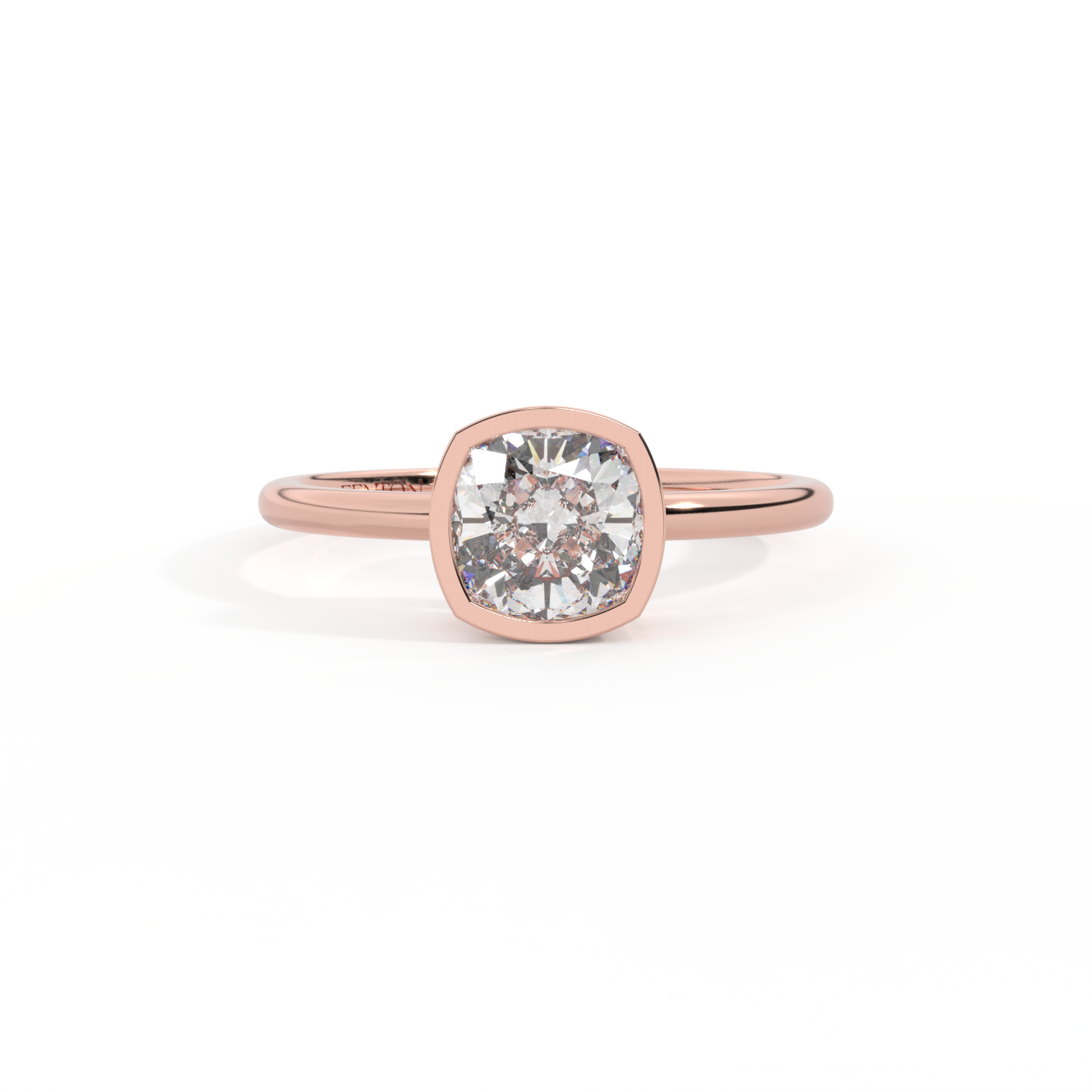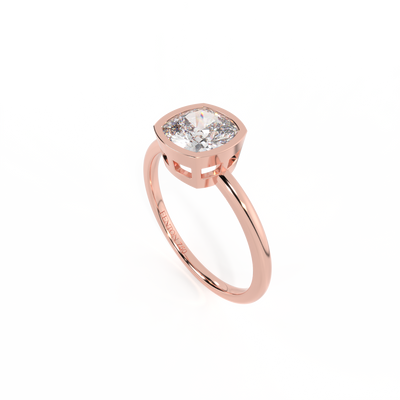 Lab Grown Diamond Bezel Cushion Cut 18k Rose Gold Ring