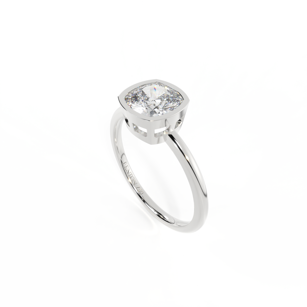 Lab Grown Diamond Bezel Cushion Cut Platinum Ring