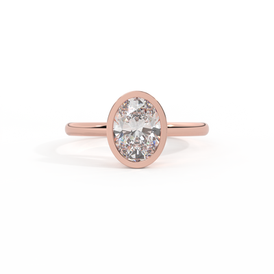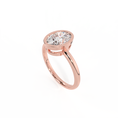 Lab Grown Diamond Bezel Oval Cut 18k Rose Gold Ring