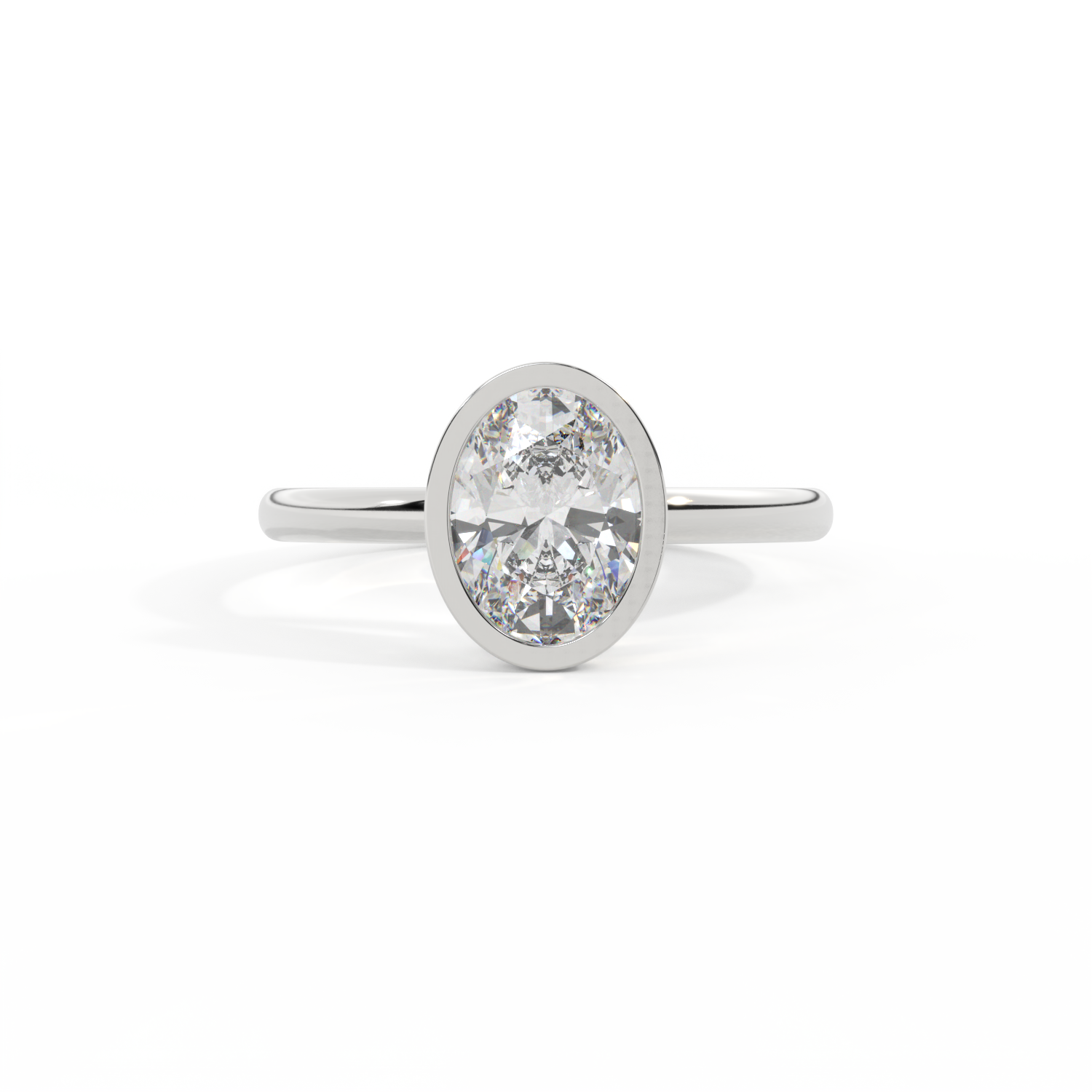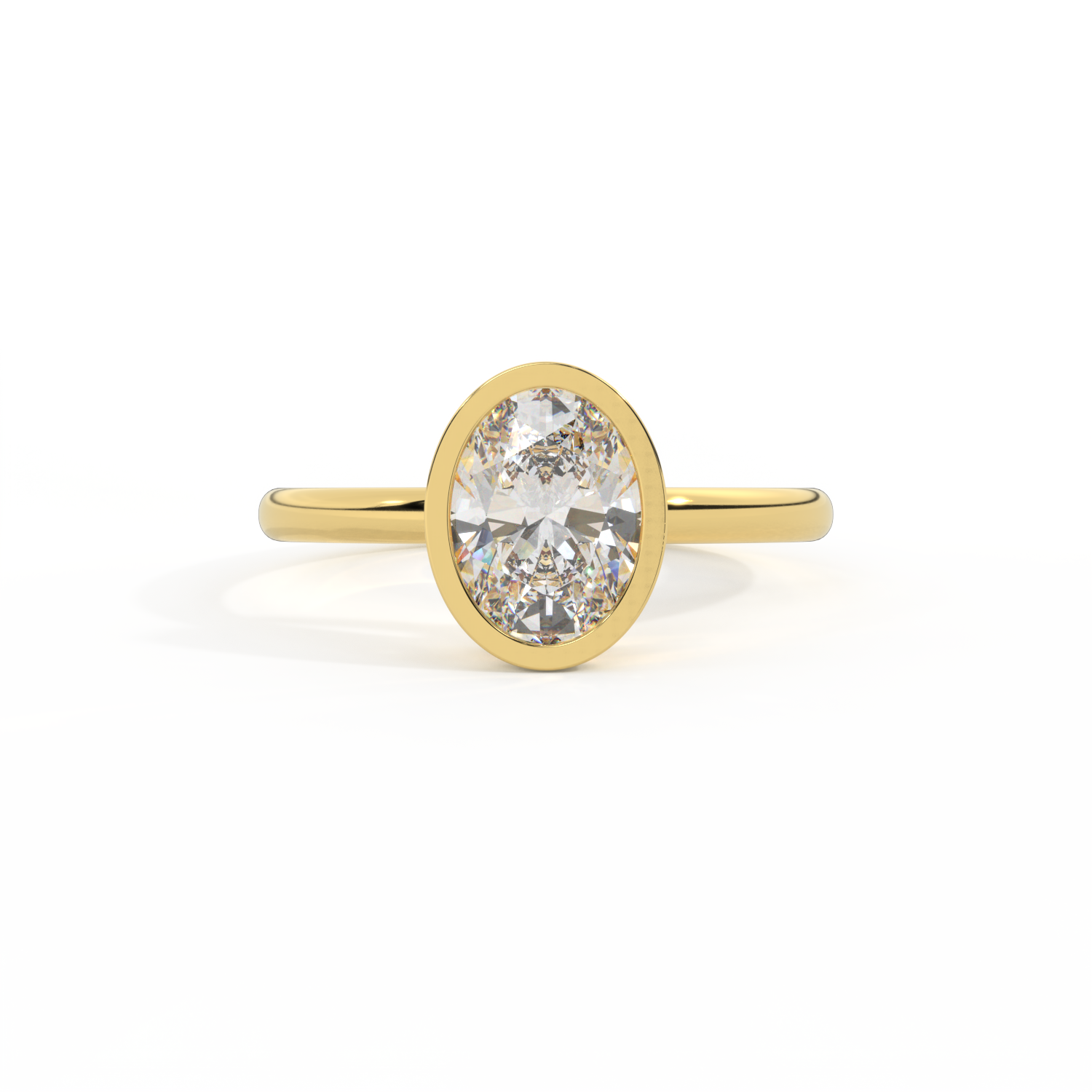 Lab Grown Diamond Bezel Oval Cut 18k Yellow Gold Ring