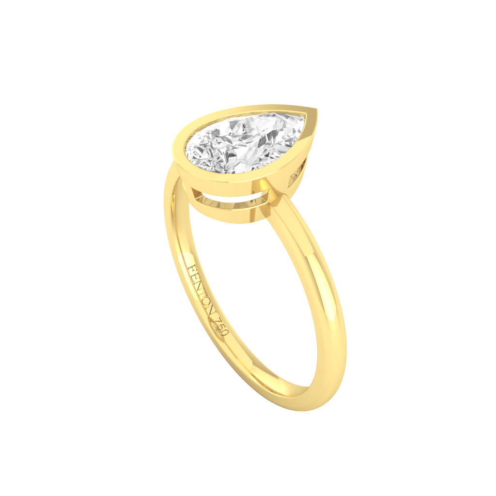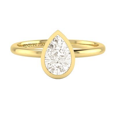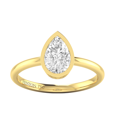 Lab Grown Diamond Bezel Pear Cut 18k Yellow Gold Ring