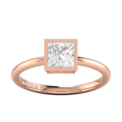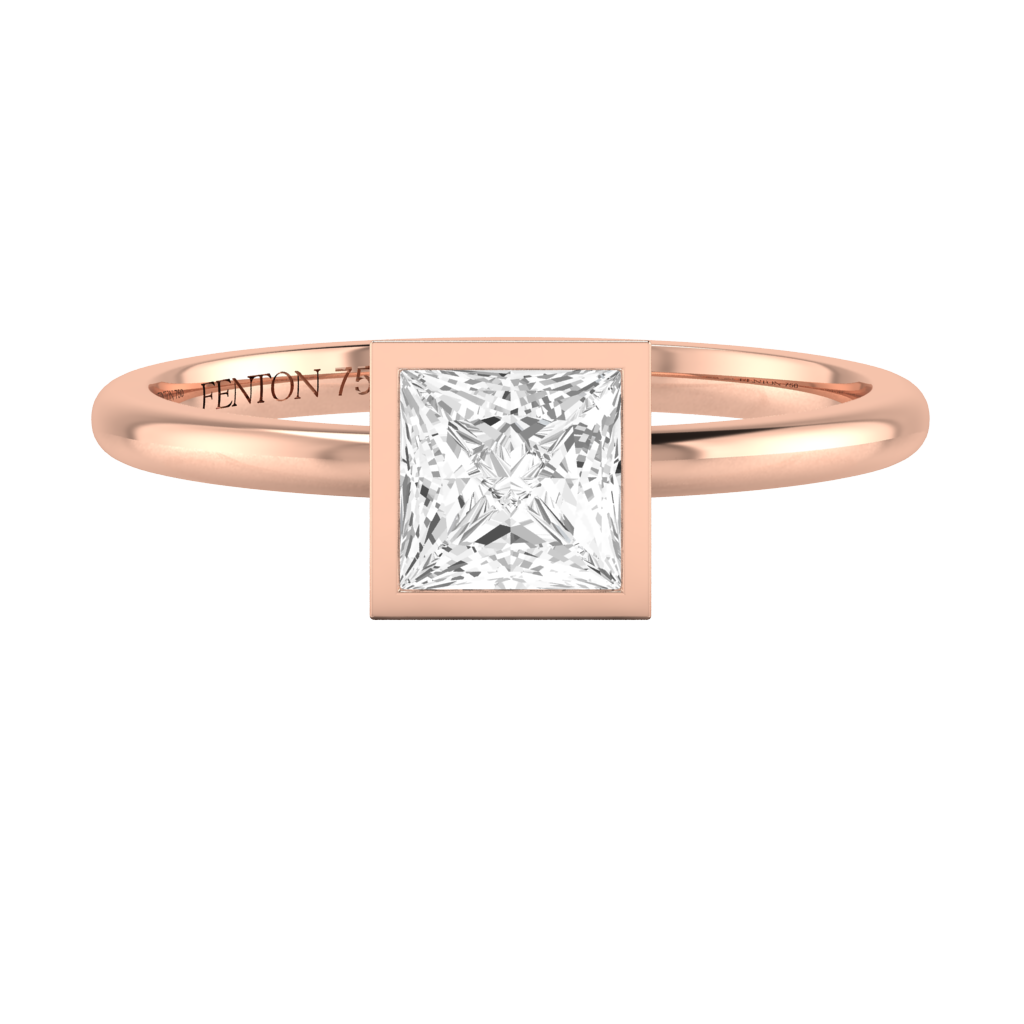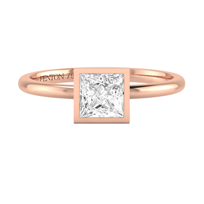 Lab Grown Diamond Bezel Princess Cut 18k Rose Gold Ring