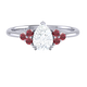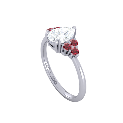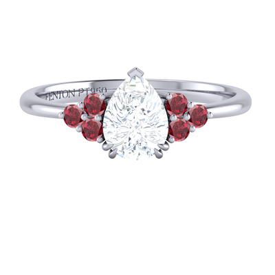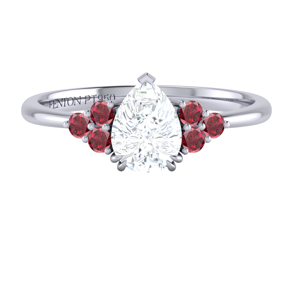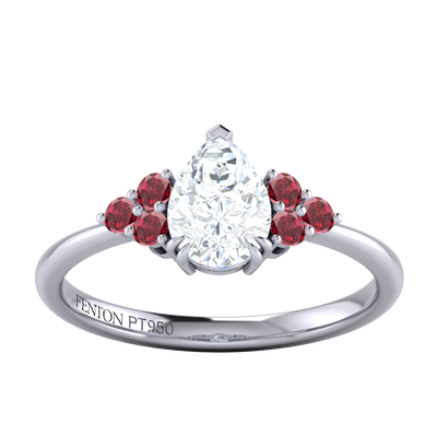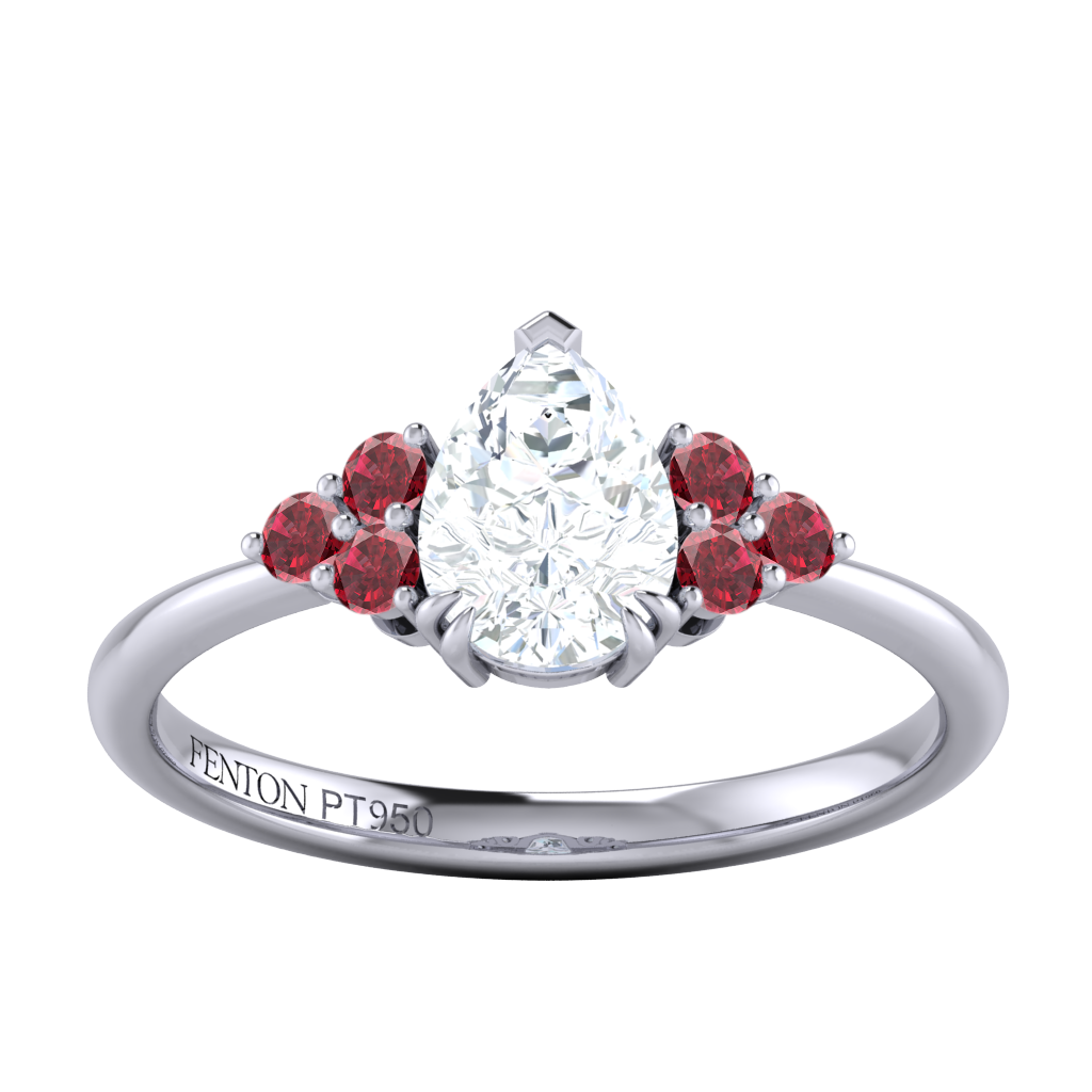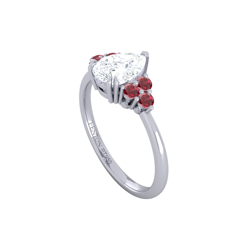 Naturally Mined Diamond Trefoil Pear Cut Diamond and Ruby Platinum Ring