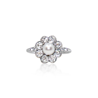 Vintage Pearl and Diamond Halo Ring