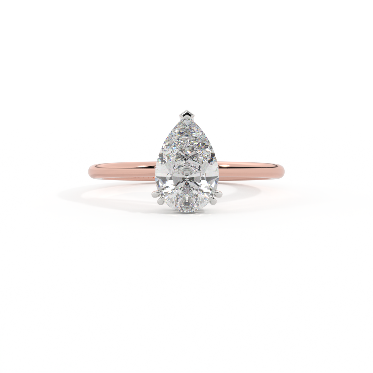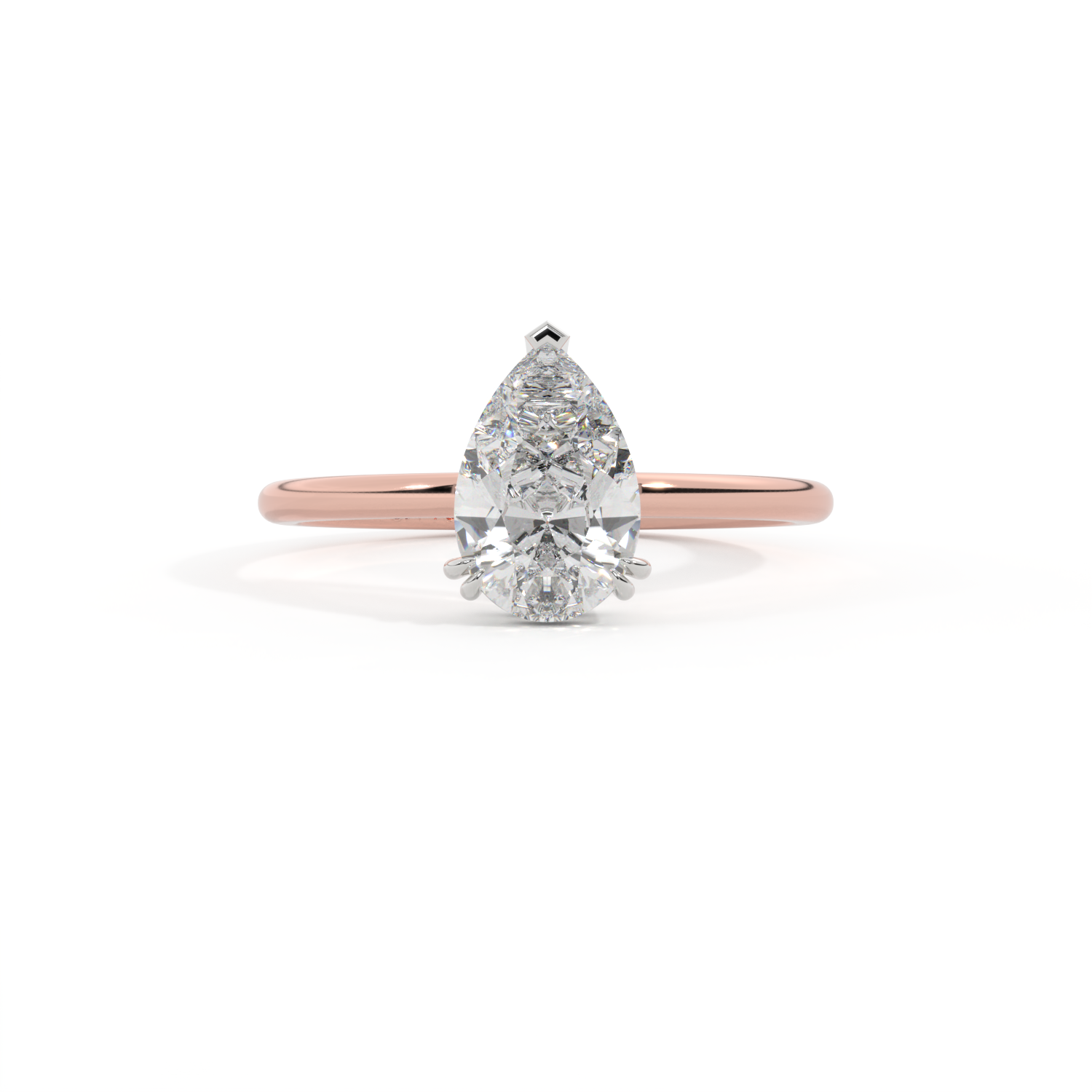 Lab Grown Solar Diamond Solitaire Pear Cut 18k Rose Gold Ring