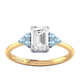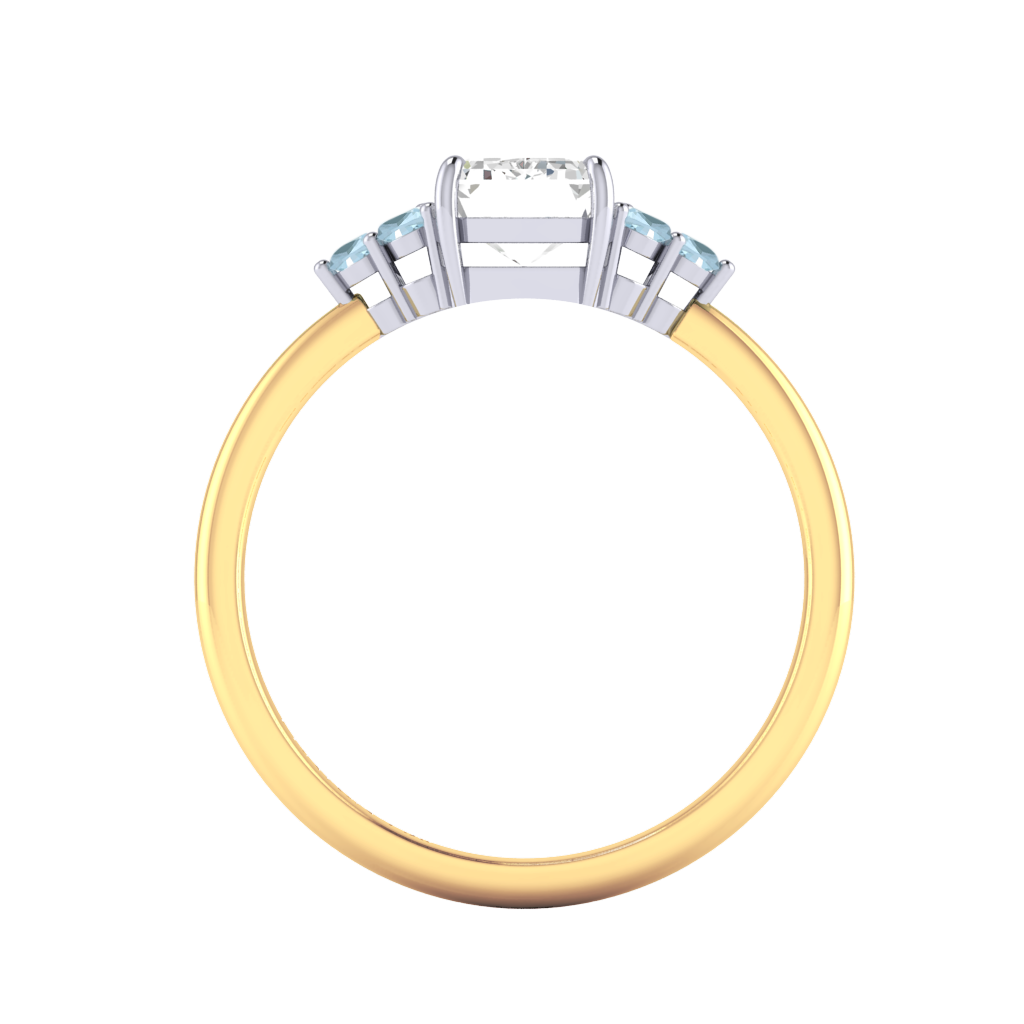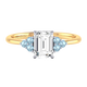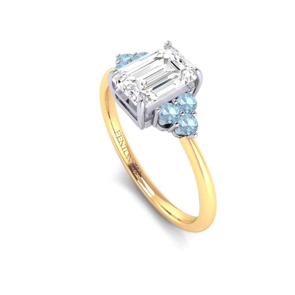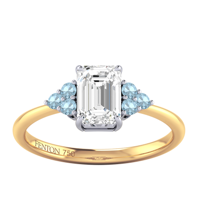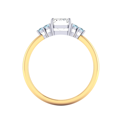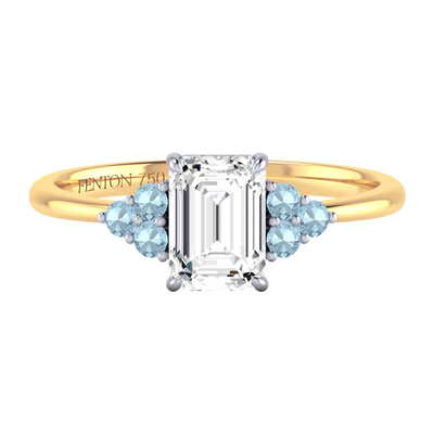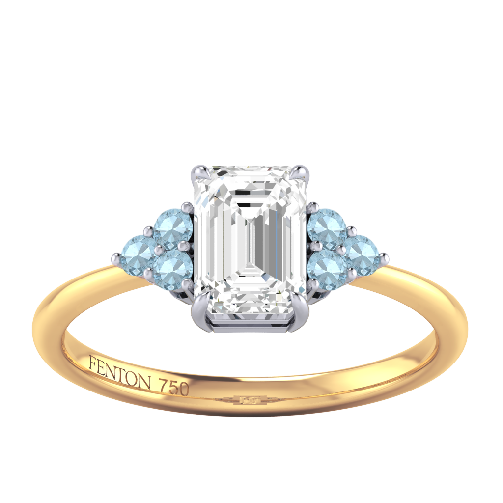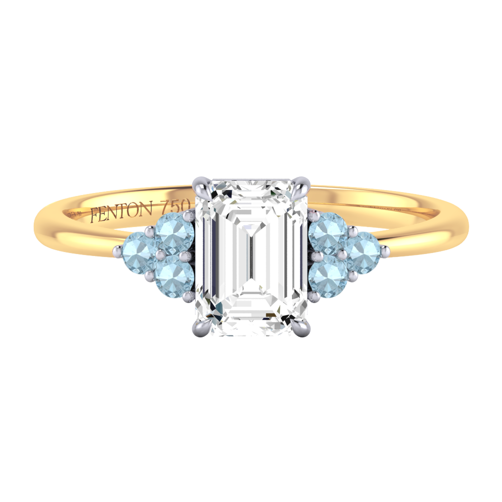 Lab Grown Solar Diamond Trefoil Emerald Cut Diamond and Aquamarine 18k Yellow Gold Ring