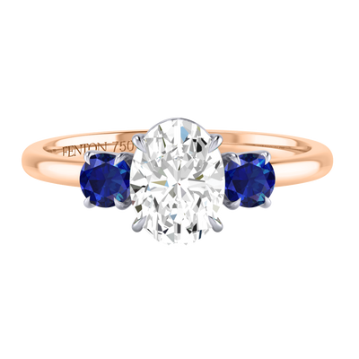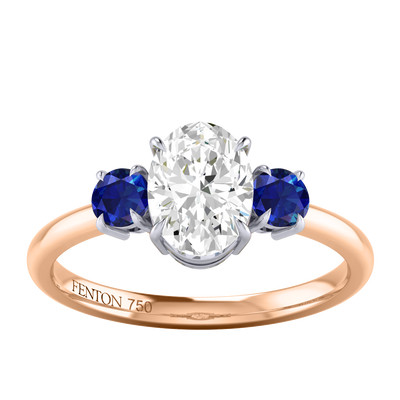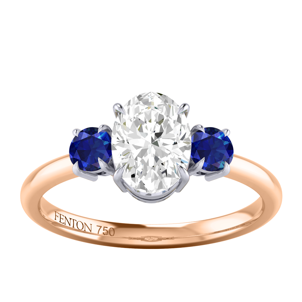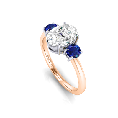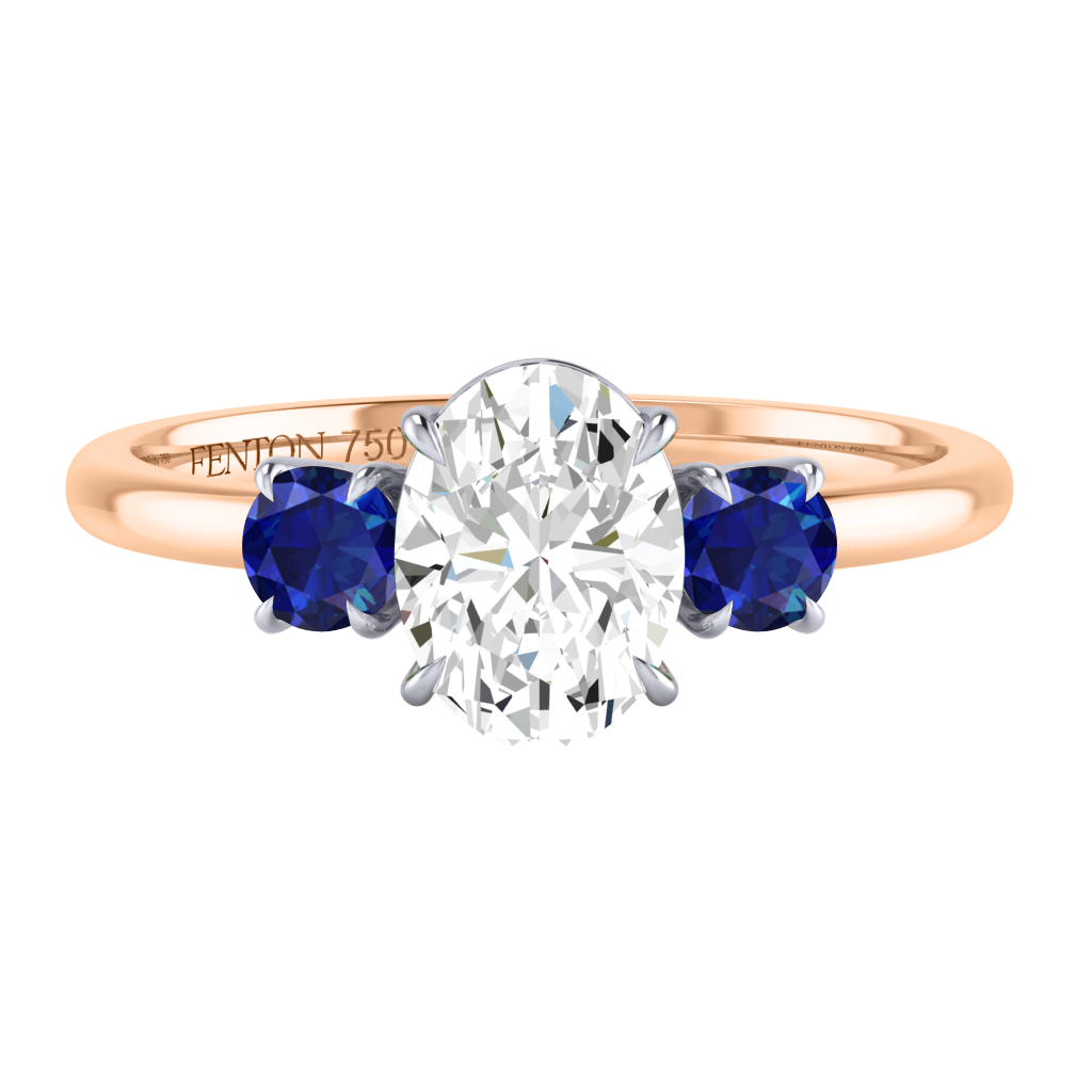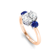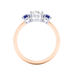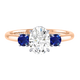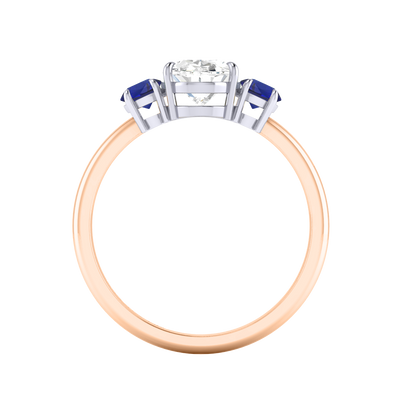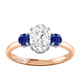Lab Grown Solar Diamond Trilogy Oval Cut Diamond and Blue Sapphire 18k Rose Gold Ring