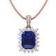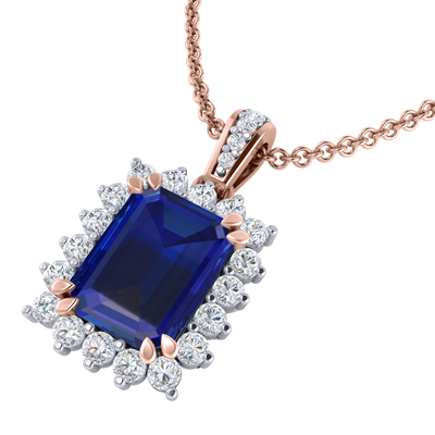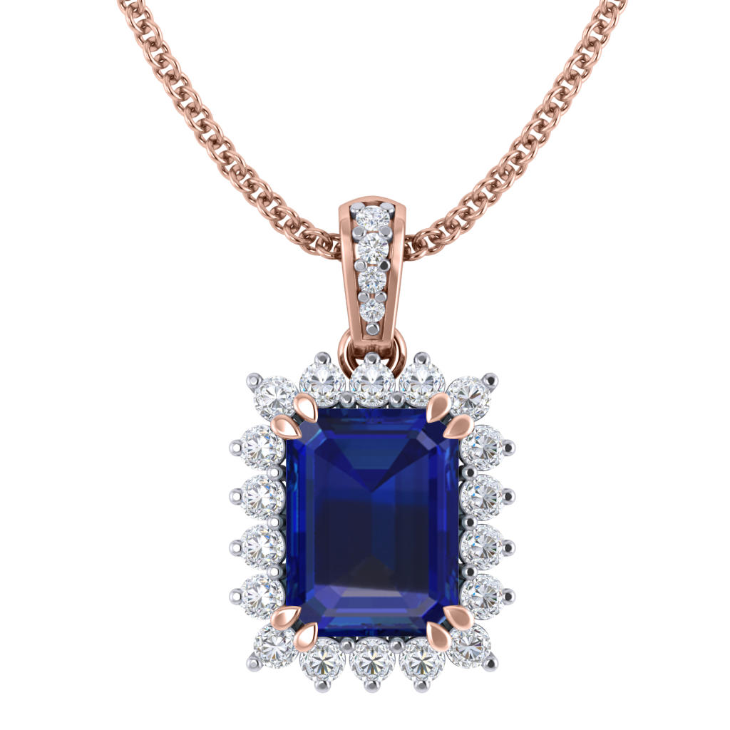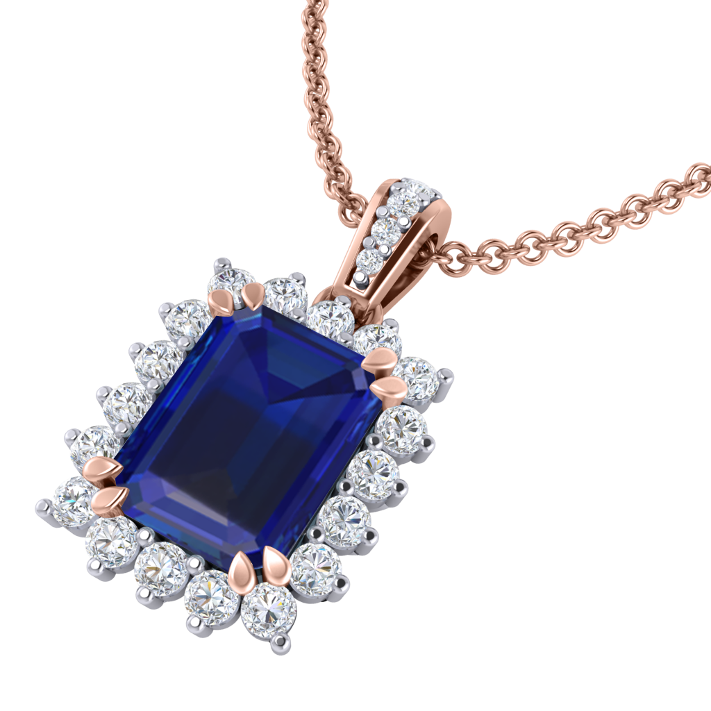 Brillez de jour comme de nuit avec votre collier pendentif Star Saphir Bleu. Saphir Bleu Ce collier pendentif est orné d'un halo en diamant de couleur G/H et de clarté VS et d'une baleine incrustée de diamants étincelants qui renferme la pierre Émeraude.