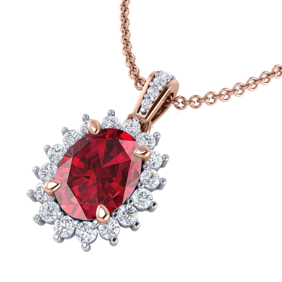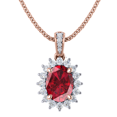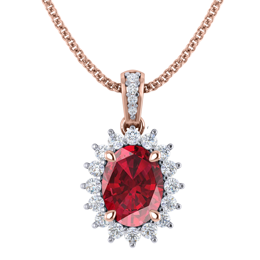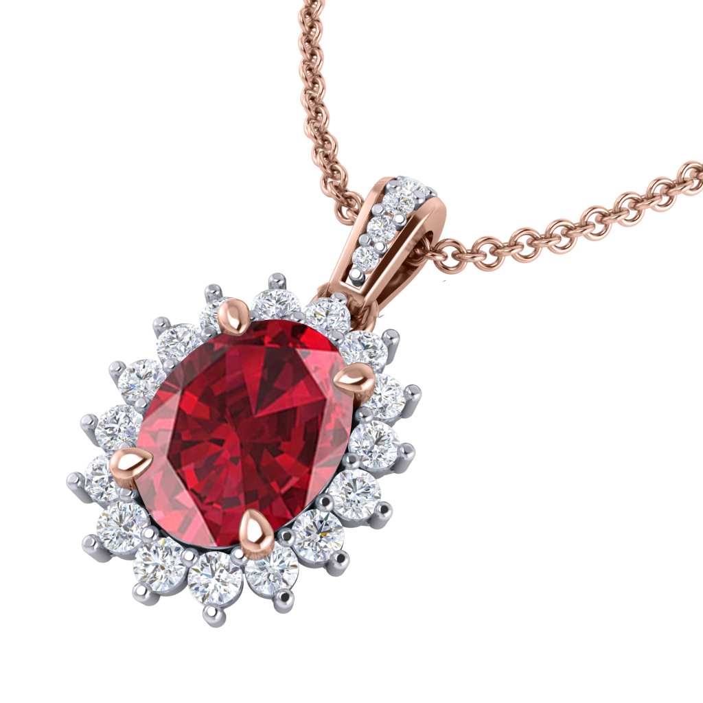 Brillez de jour comme de nuit avec votre collier pendentif Star Rubis. Rubis Ce collier pendentif est orné d'un halo en diamant de couleur G/H et de clarté VS et d'une baleine incrustée de diamants étincelants qui renferme la pierre Ovale.
