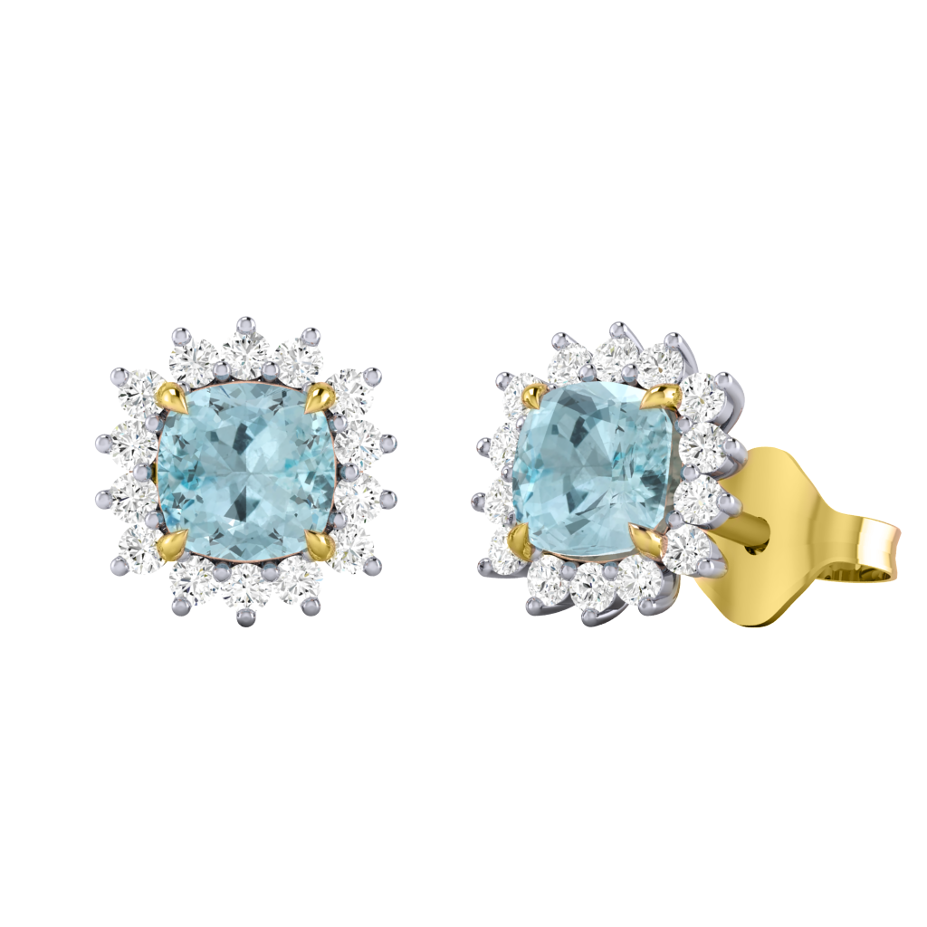 Star Stud Cushion Aquamarine 18K Yellow Gold Earrings