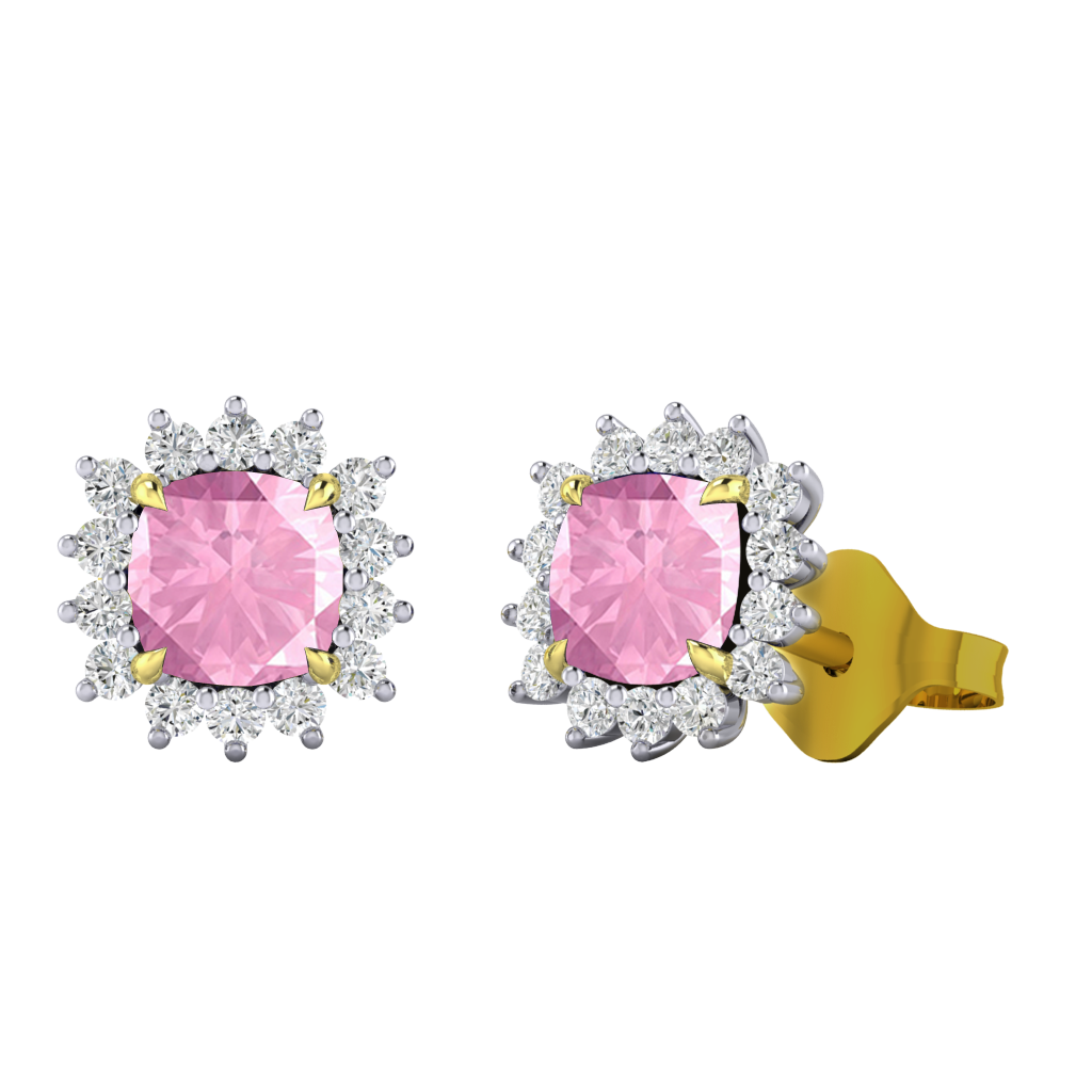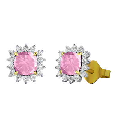 Star Stud Cushion Pink Sapphire 18K Yellow Gold Earrings